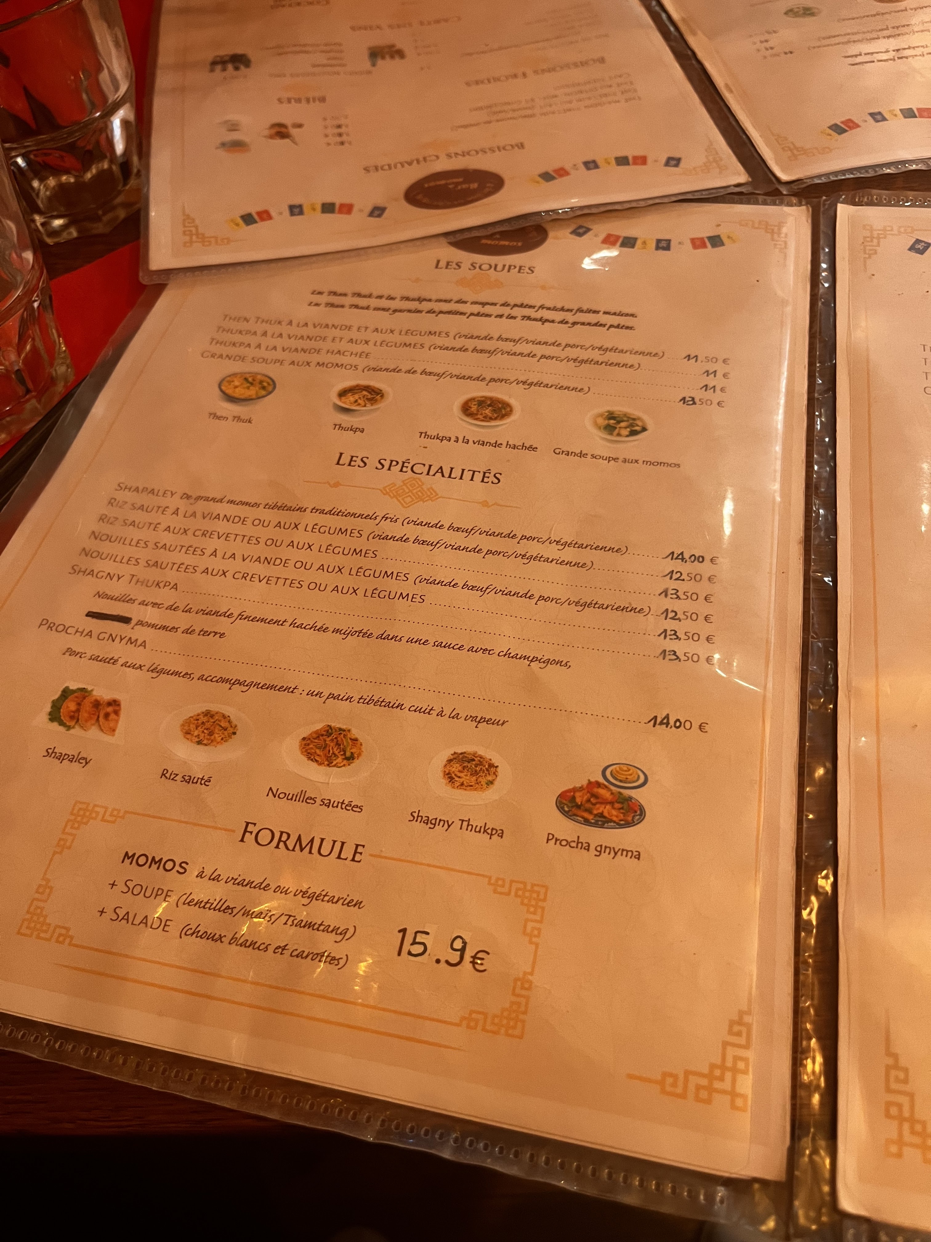 Je ne connaissais pas la cuisine tibétaine, et c'était un vrai régal ! Je conseille la grande soupe aux momos, elle était délicieuse !