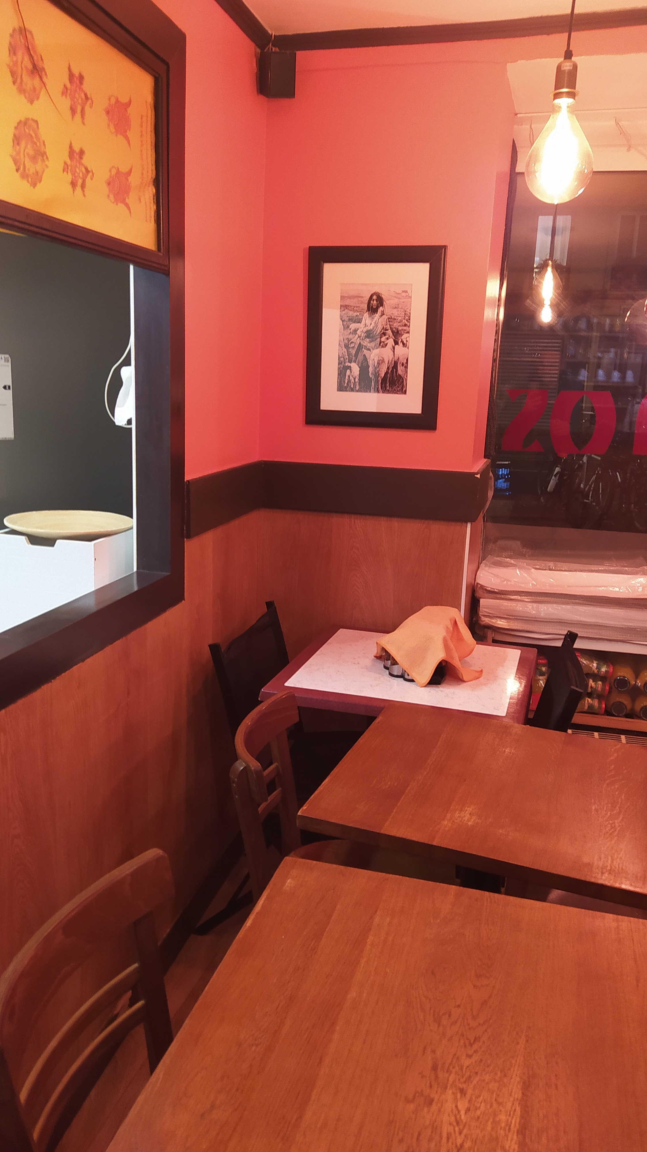 Lieu sympa. Local est petit mais les gens restent le temps qu il faut pour manger. La cuisine est bonne, ((je ne la connaissais pas).allez y,vous ne le regretterez pas prix correct