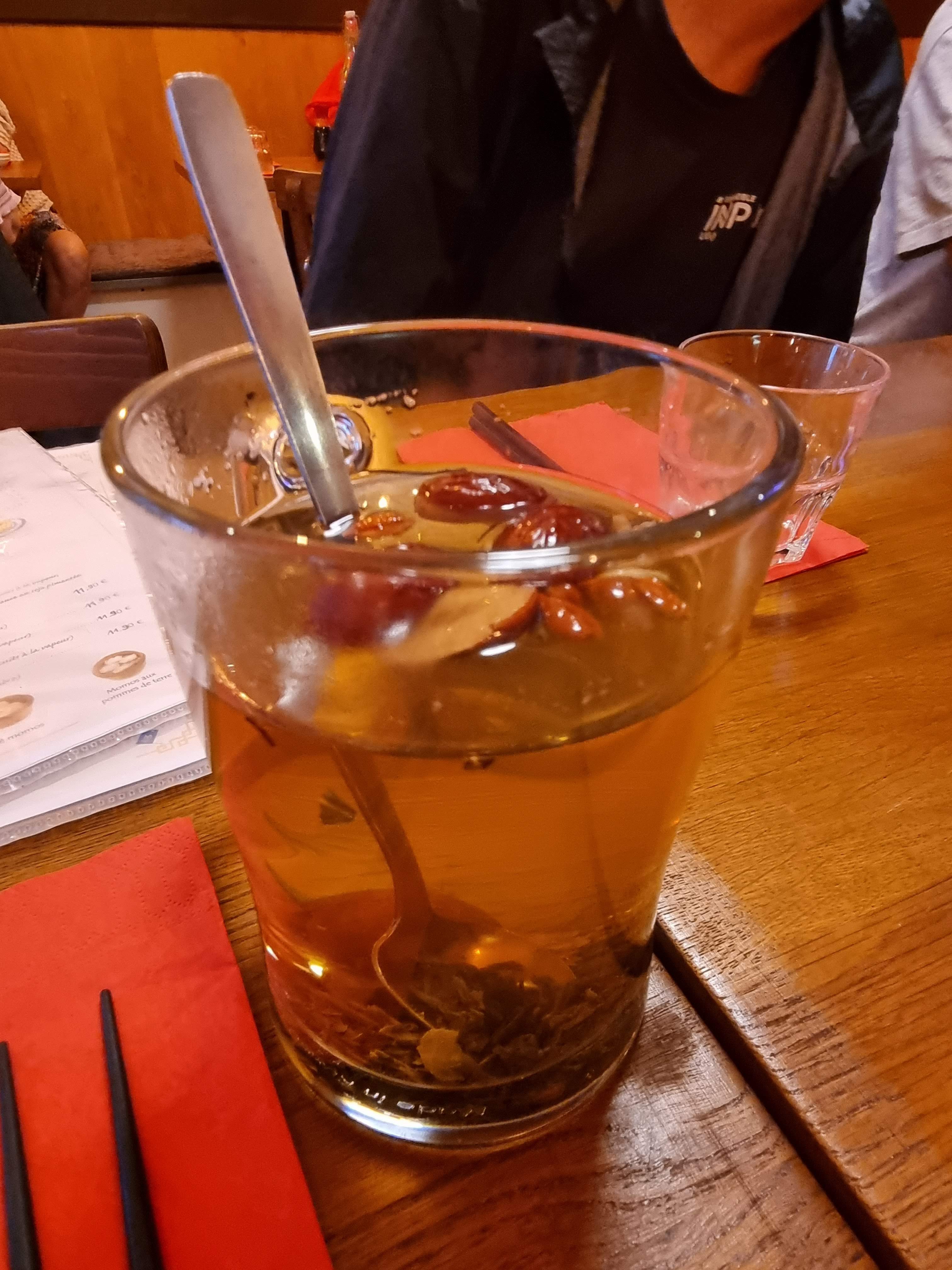Très très copieux, très frais et très goutu ! Peut-être un peu trop de sel dans les soupes s’il faut vraiment trouver une critique à faire. Momo + thé maison = plaisir assuré !