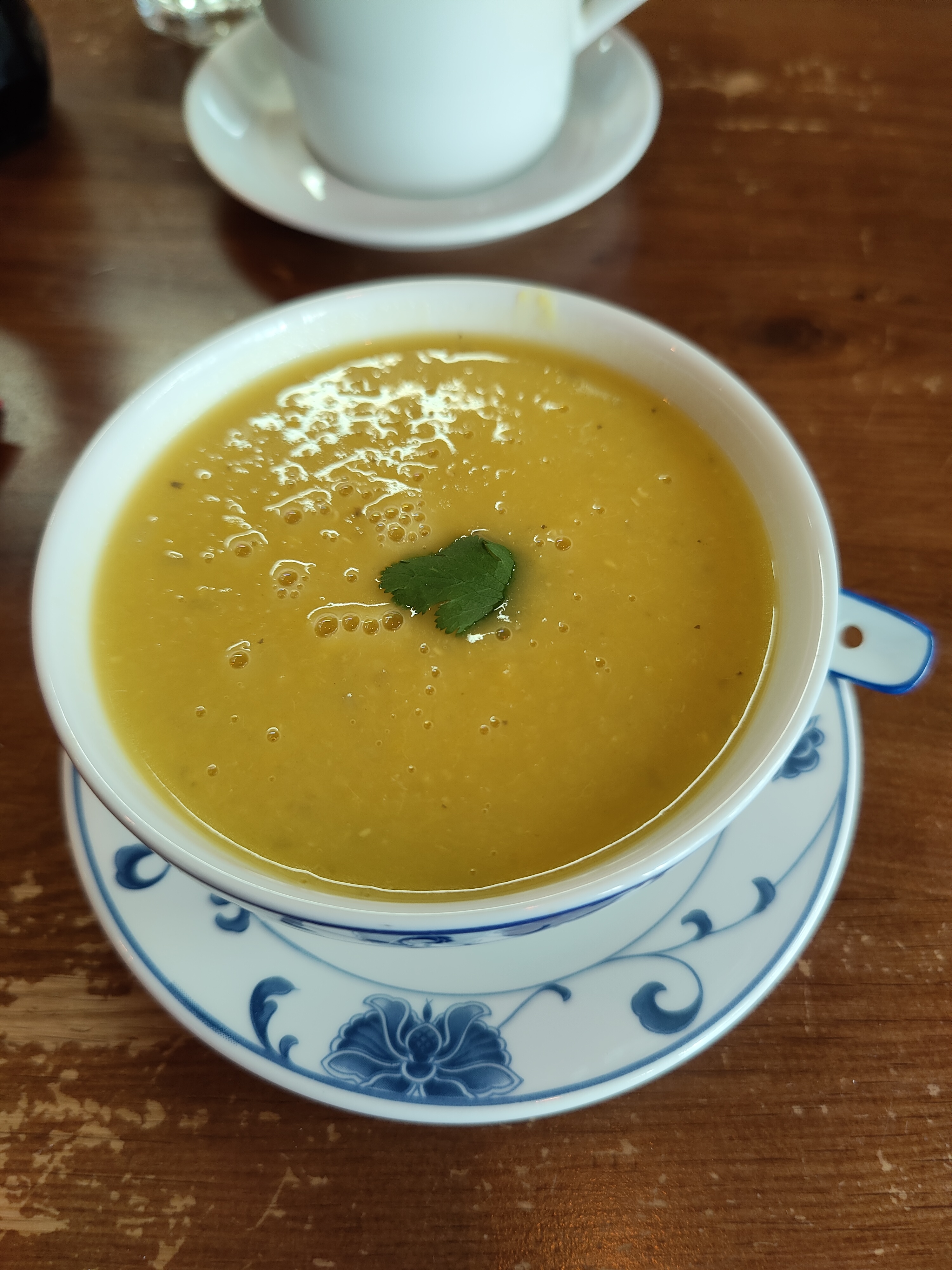Ca paye VRAIMENT pas de mine. Mais c’etait tres bon. La soupe de lentille et les raviolis végétariens too.