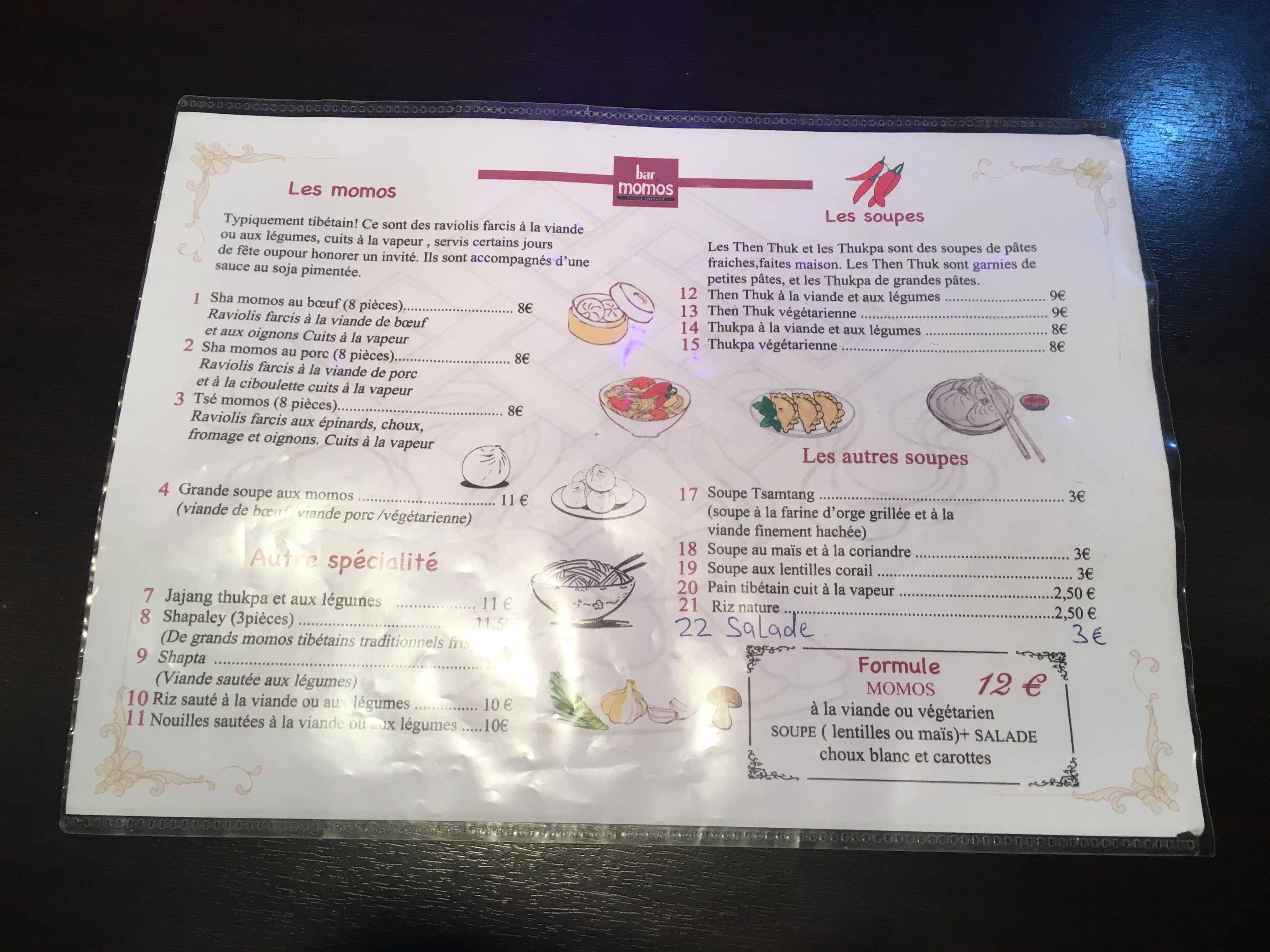 Les momos sont bons les soupes de pâtes copieuses et la soupe de lentilles corail excellente le tout à petit prix allez y.