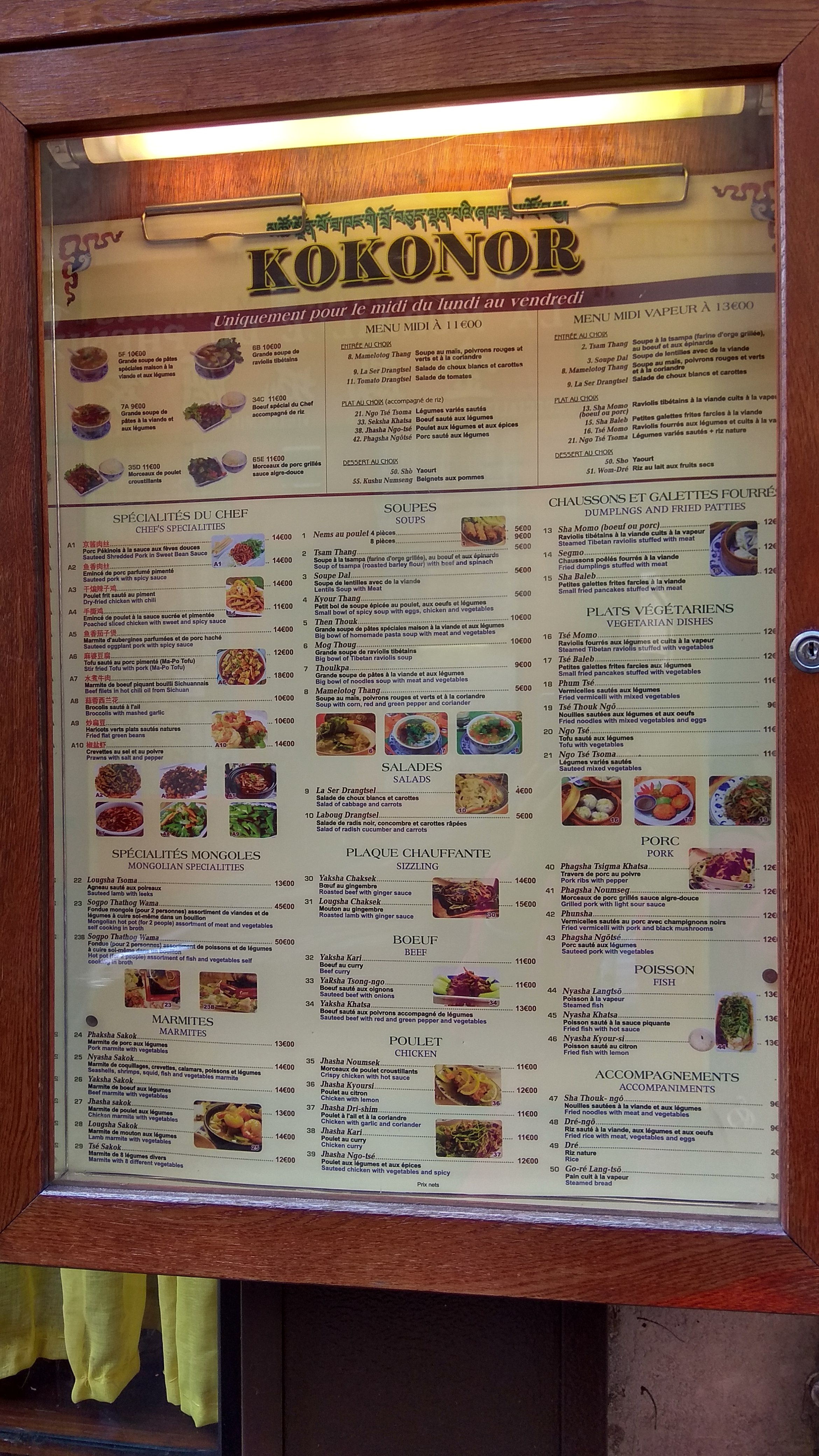 Ah le Kokonor ! Je connais ce restaurant depuis maintenant 8 ans, et ce fut ma cantine du midi pendant une période de ma vie. J'ai eu le plaisir d'y retourner récemment, et je n'ai pas été déçue. Les soupes (aux lentilles et aussi celle à la tsampa) sont toujours aussi délicieuses, les marmites bien garnies, le thé maison extrêmement aromatique. Dommage que le riz au lait en dessert ait été supprimé ! Je le trouvais bien plus gouteux que le riz au safran avec le yaourt. Le service est très bienveillant, les prix tout à fait raisonnables. J'y reviendrai encore !
