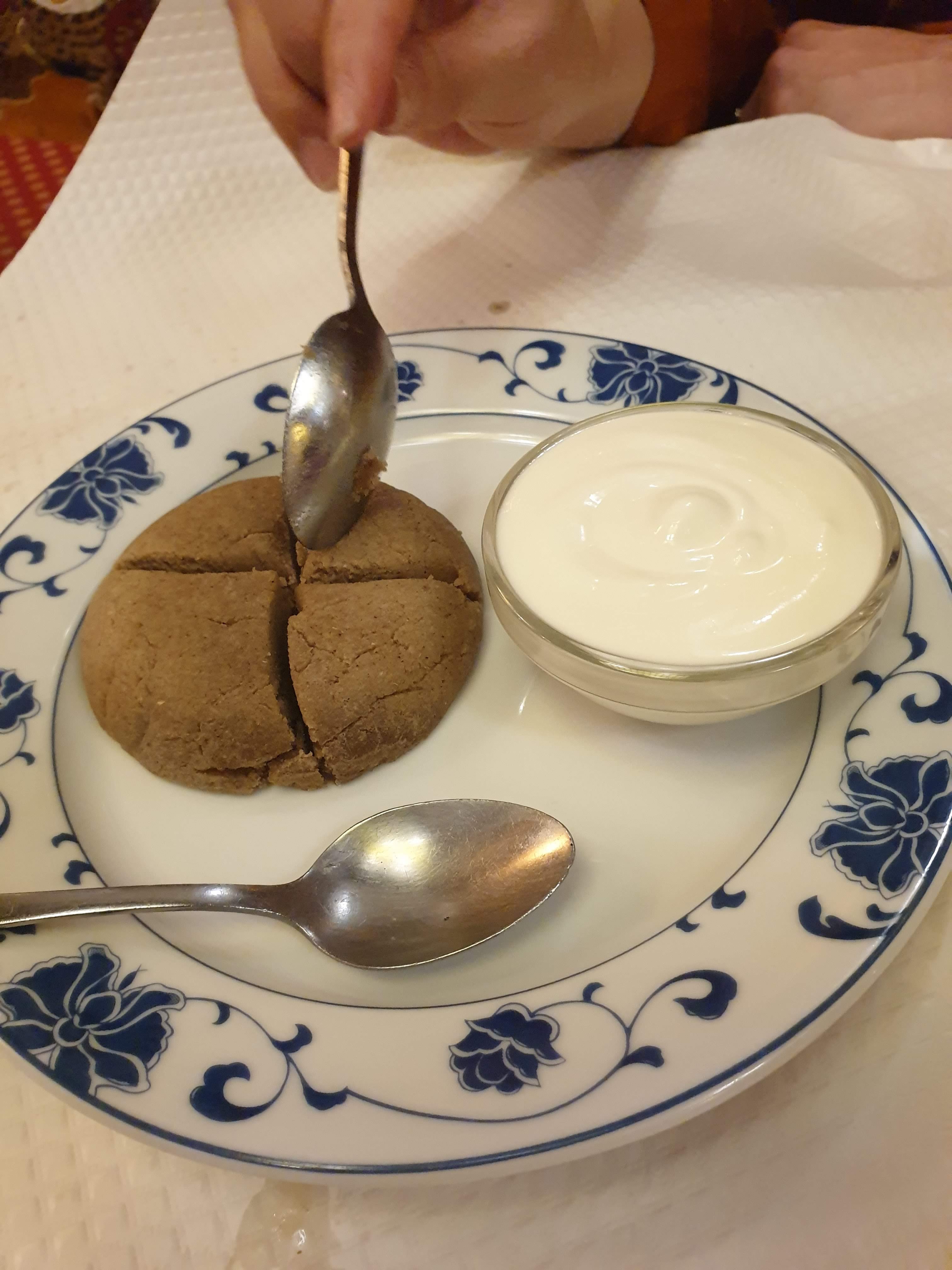 Bonne nourriture Je n'ai jamais mangé de nourriture tibétaine avant ce jour. La nourriture était bonne. Commandé le poulet, le pain tibétain, avec du yaourt et un biscuit au blé comme dessert J'y retournerais