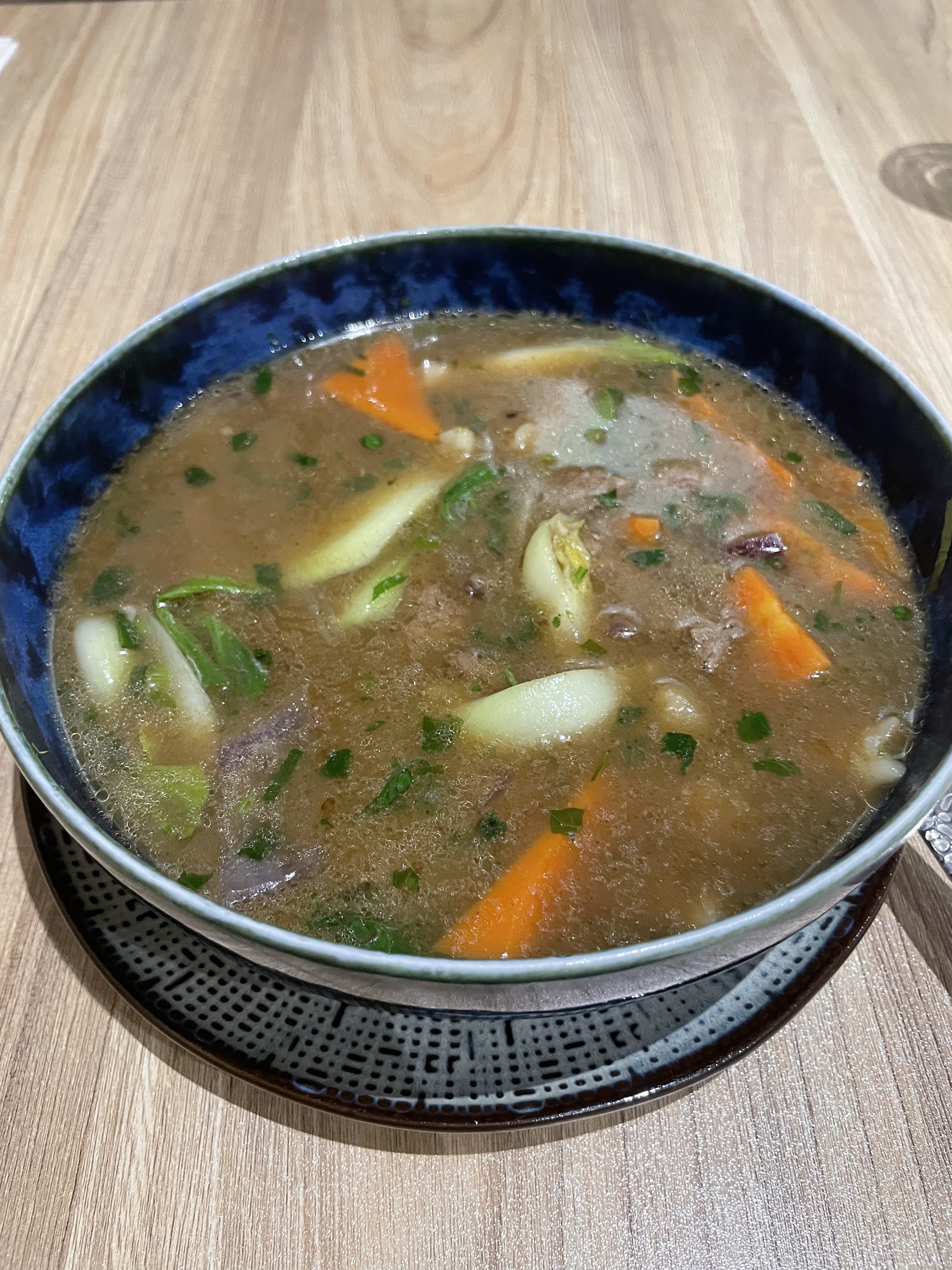 Découverte du jour, difficile de trouver une place pour se garer . Nous somme venus découvert cette nouvel cuisine Tibétaine , que nous y connaissons pas du tout . Accueil super agréable sympa , serveuse souriante . Apéritif offert, en attendant les plats . 👍 La carte pas trop cohérente . Il y a des plats tibétaine et des salades César , avec burgers au truffe et frites au truffe . J’ai pas trop bien compris . En quoi c’est tibétain mais bon je m’y connais rien sûrement .🥲 Le repas nous avons commandé 1 soupe , des raviolis fris au bœuf et des nouilles sautées au bœuf . La soupe : bonne sans plus , pas trop assaisonné . Ça reste bon . La raviolis un peu fade mais bon j’ai déjà manger mieux . Les nouilles bœuf , super gras , BOEUF trop cuit , sans saveur . C’est comme des nouilles sauté au bœuf Chinoise mais en moins bonne . Bref . Et le thé tibétain . Juste une tasse de thé avec lait et beurre et sel . Hmm. Sans plus . Les toilettes TRÈS PROPRES ! Merci pour l’accueil et bonne continuation 👏