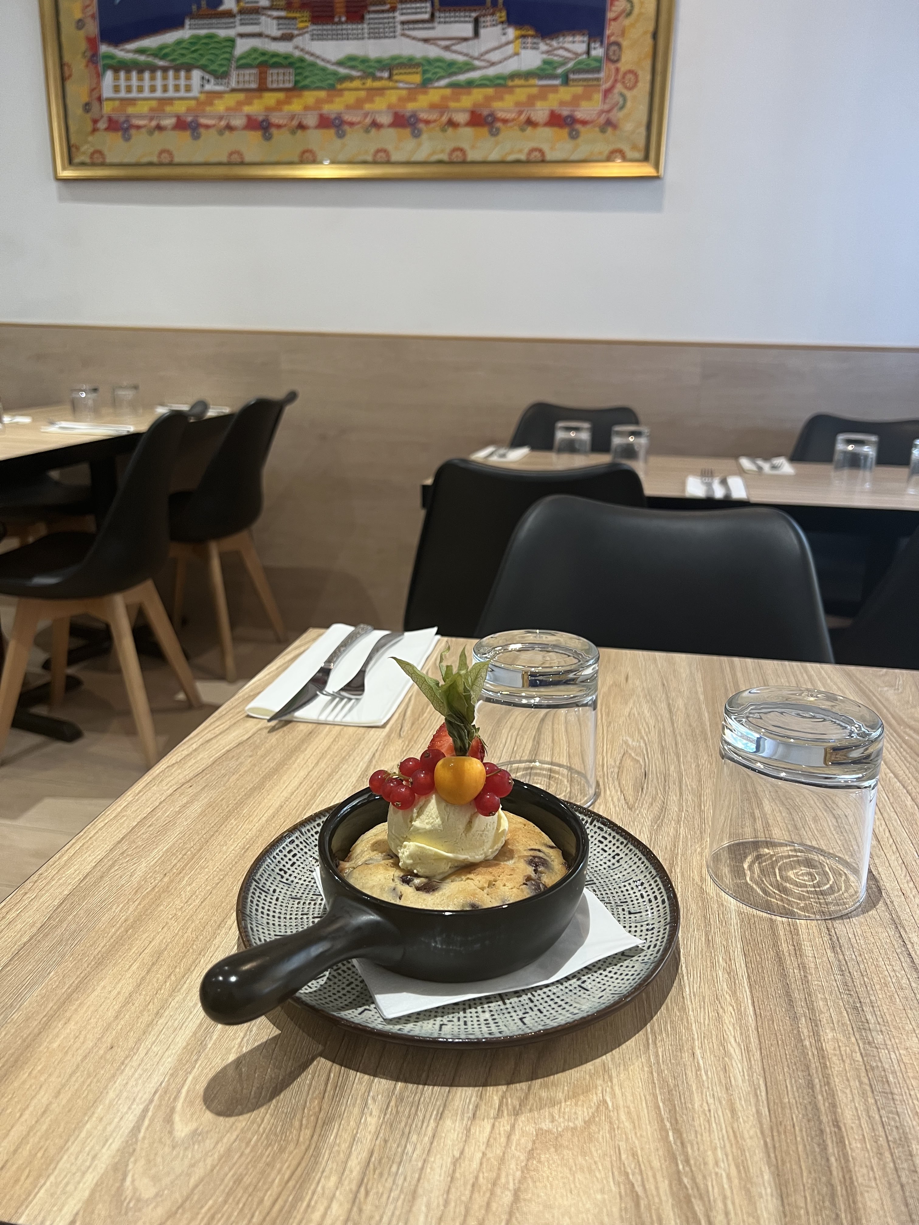 Belle découverte de cuisine. Les personnes qui tiennent le restaurant sont très sympathique. Jolie salle et très belle terrasse. Mélange de cuisine entre des plats tibétains et des accompagnements ou desserts français.