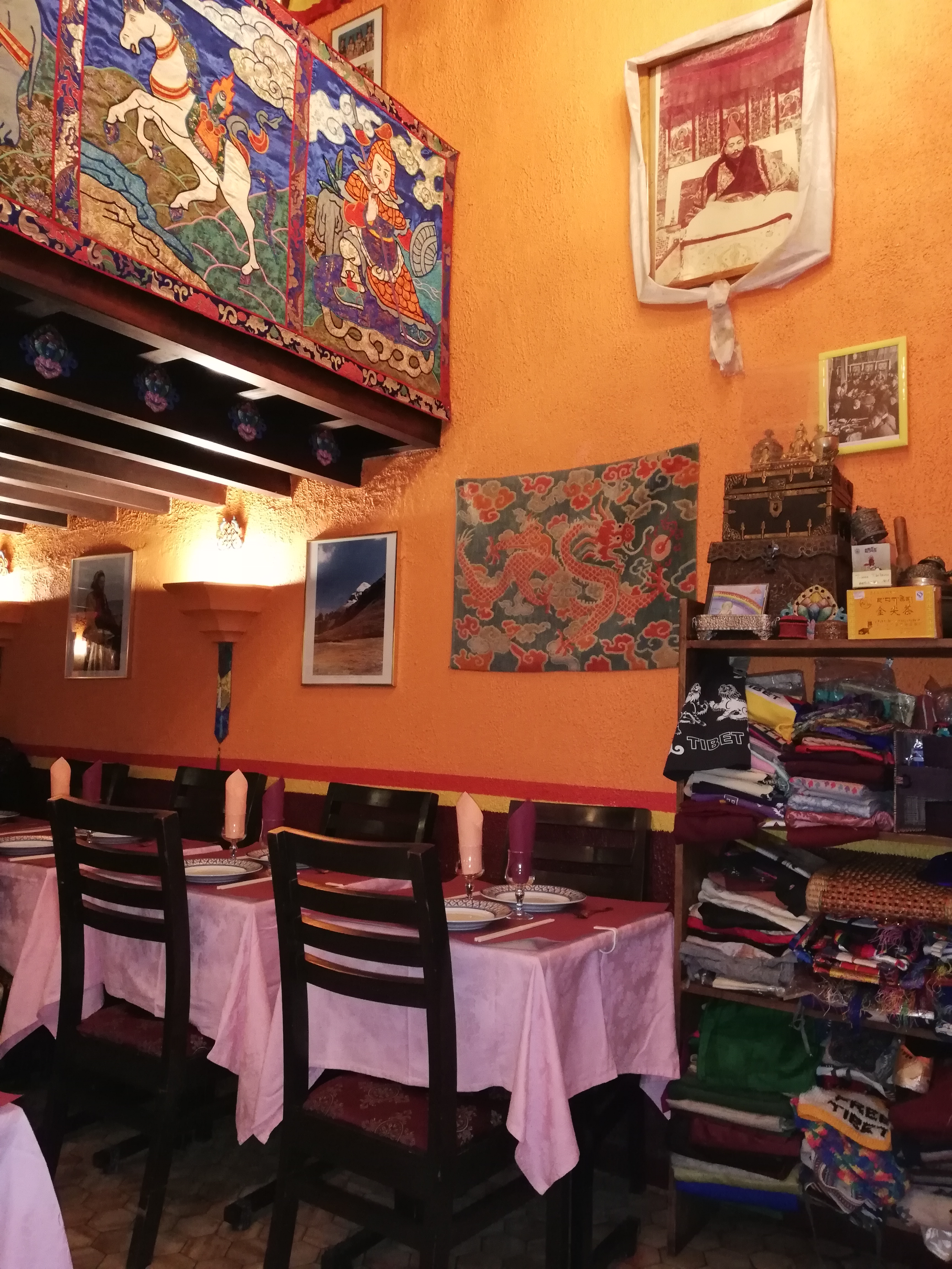 Le décor est très riche en décoration venue du Tibet, le cadre est très agréable pour les yeux car on se sent plongé au Tibet. Il y a également possibilité d’acheter de l’encens, des icônes ou des tissus. La carte est très variée et les plats sont équilibrés et typiques du Tibet. La serveuse est très professionnelle et agréable.