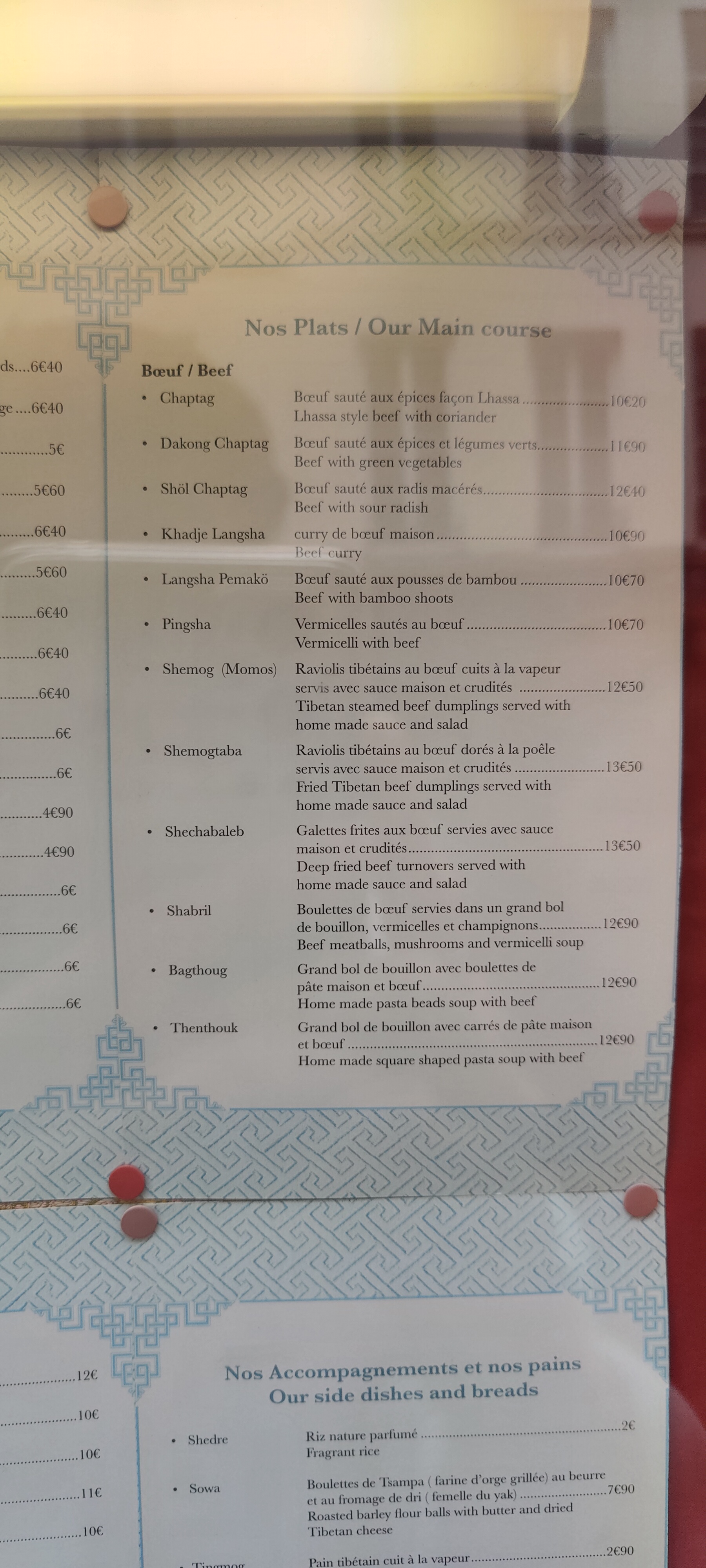 Je suis allé au restaurant Lhassa avec 4 vrais Tibétains réfugiés en France. Toute la carte n'est pas tibétaine, cependant les plats tibétains choisis étaient vraiment tibétains.