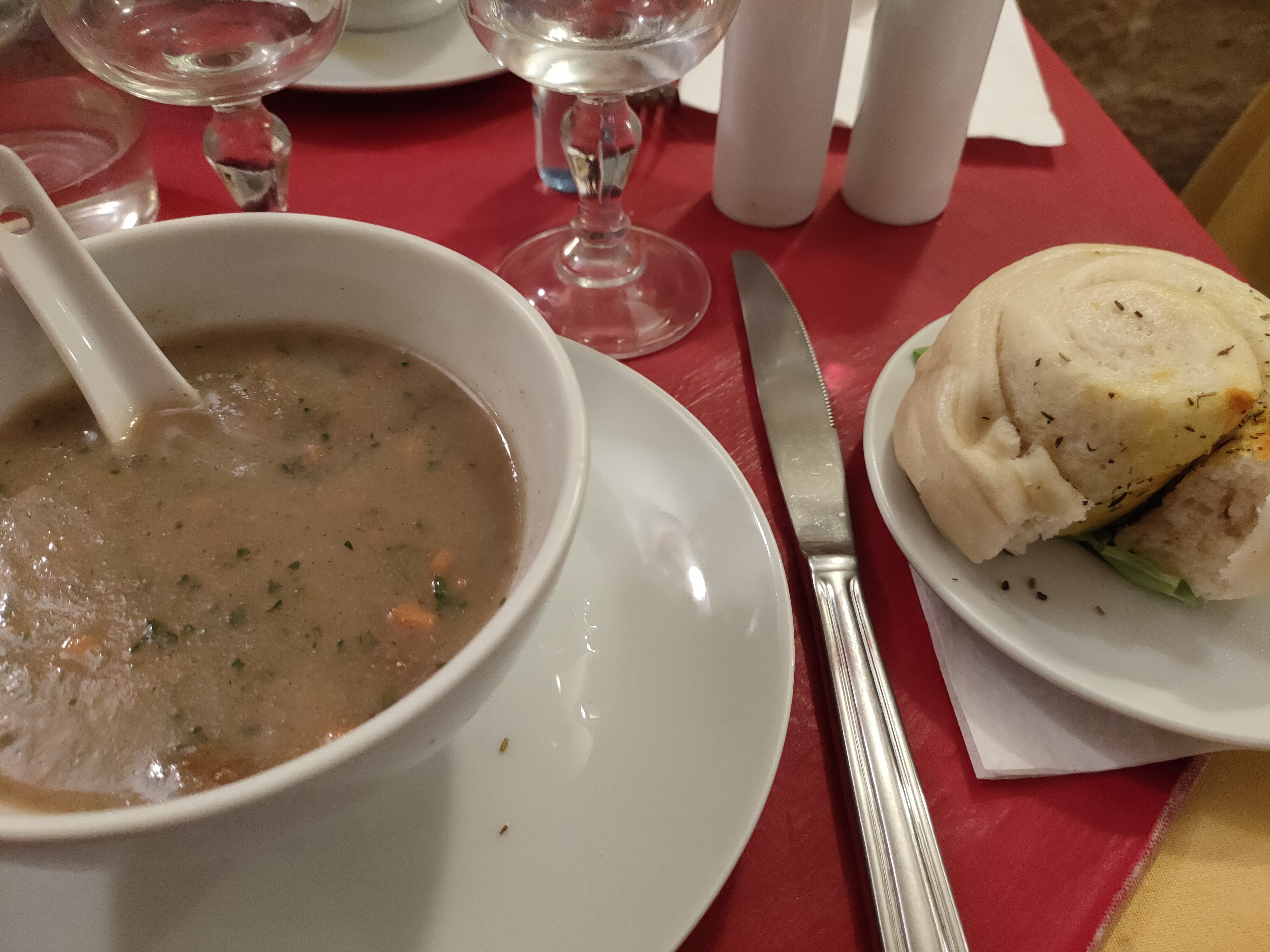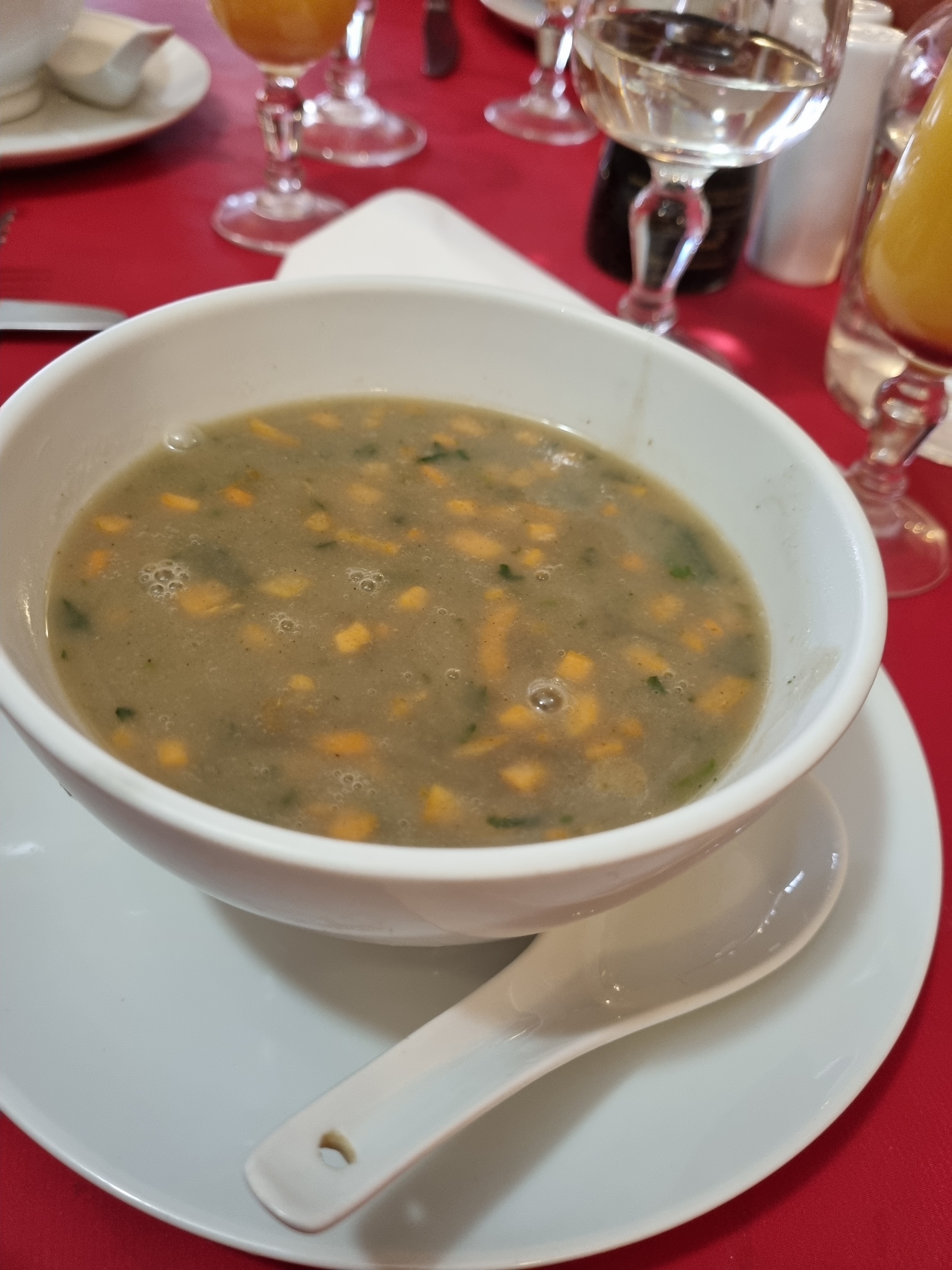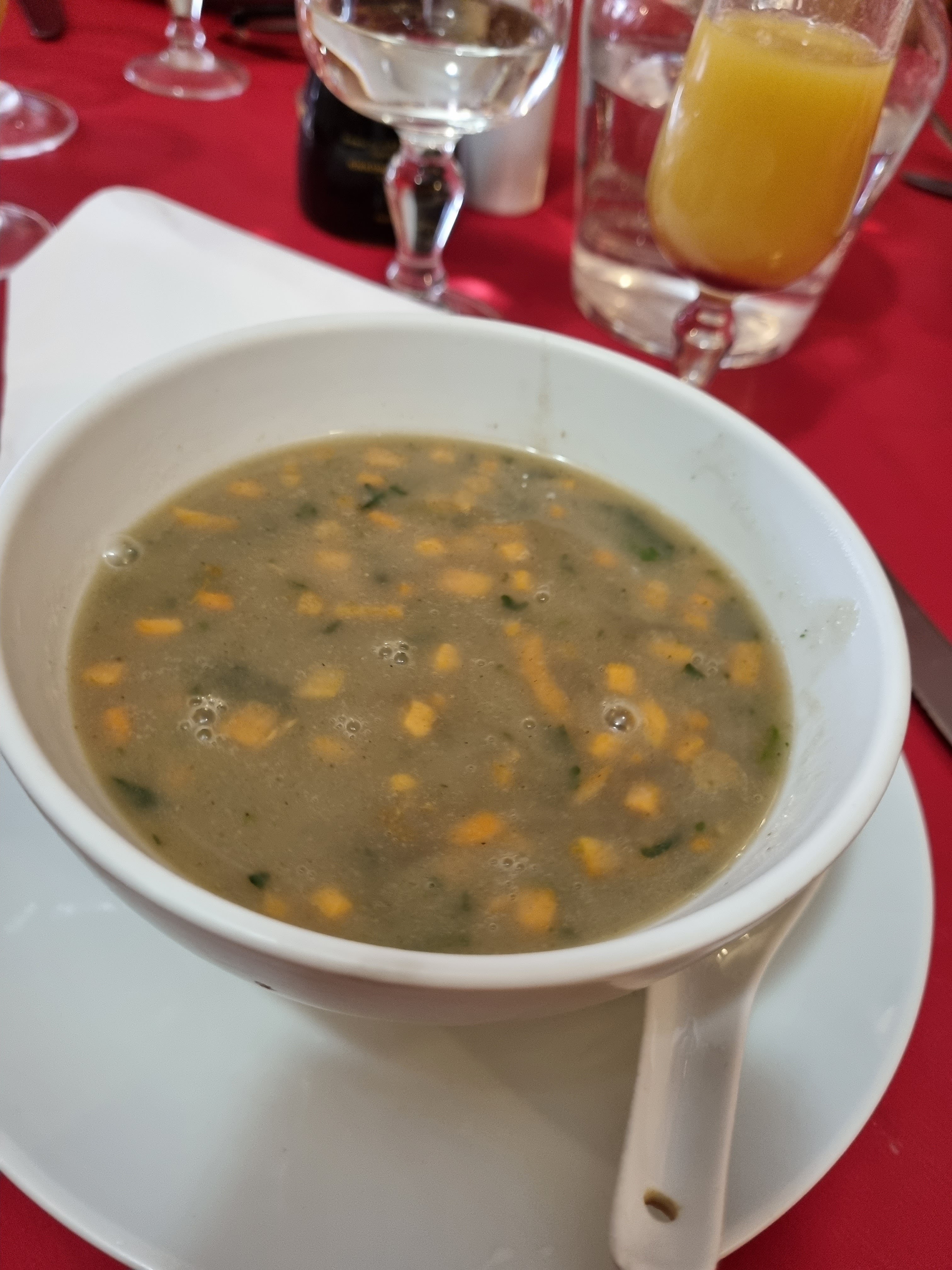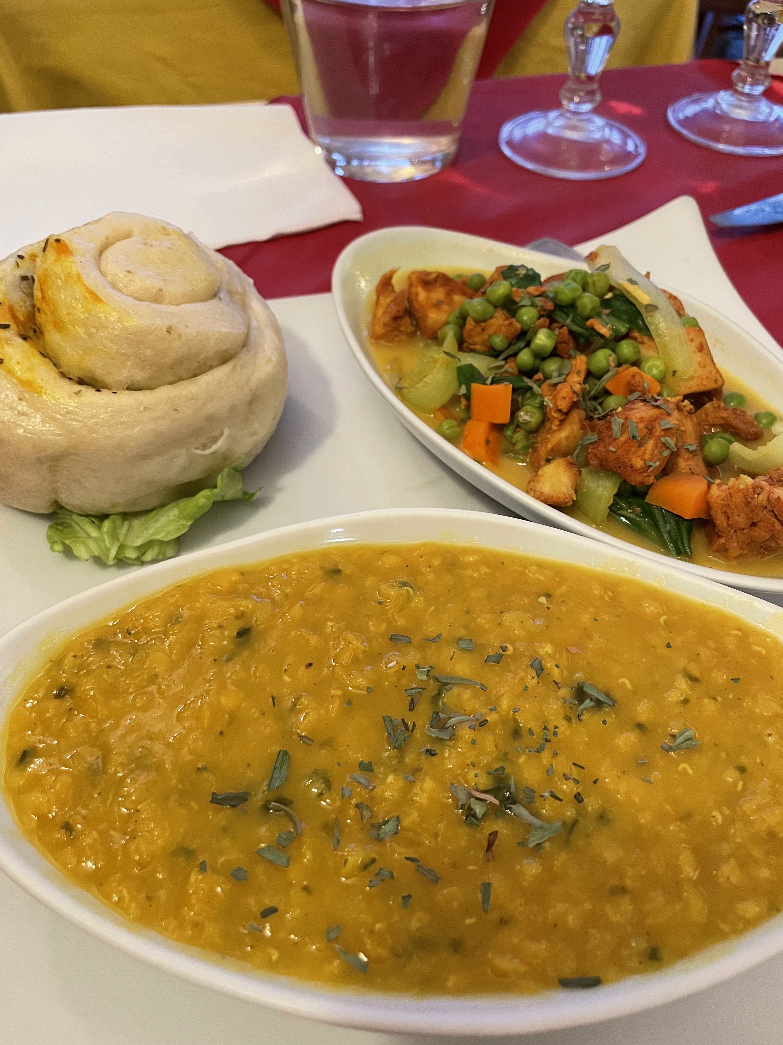 Menu 22€ la soupe est une découverte, savoureuse.les momo se marient bien avec la sauce à la menthe.le poulet du curry est sec. Dans l'ensemble c'est copieux mais je trouve que ça manque de saveurs.