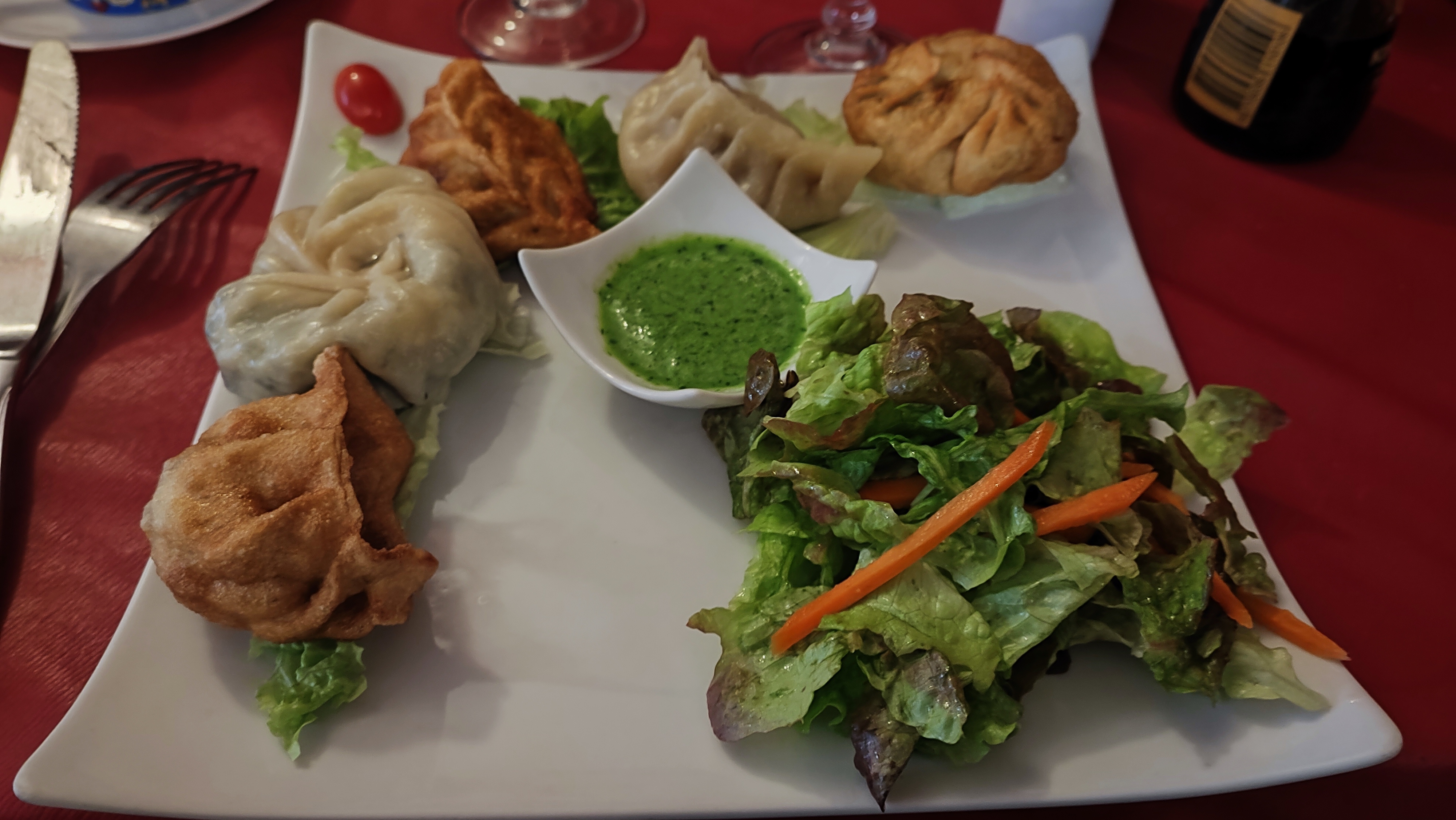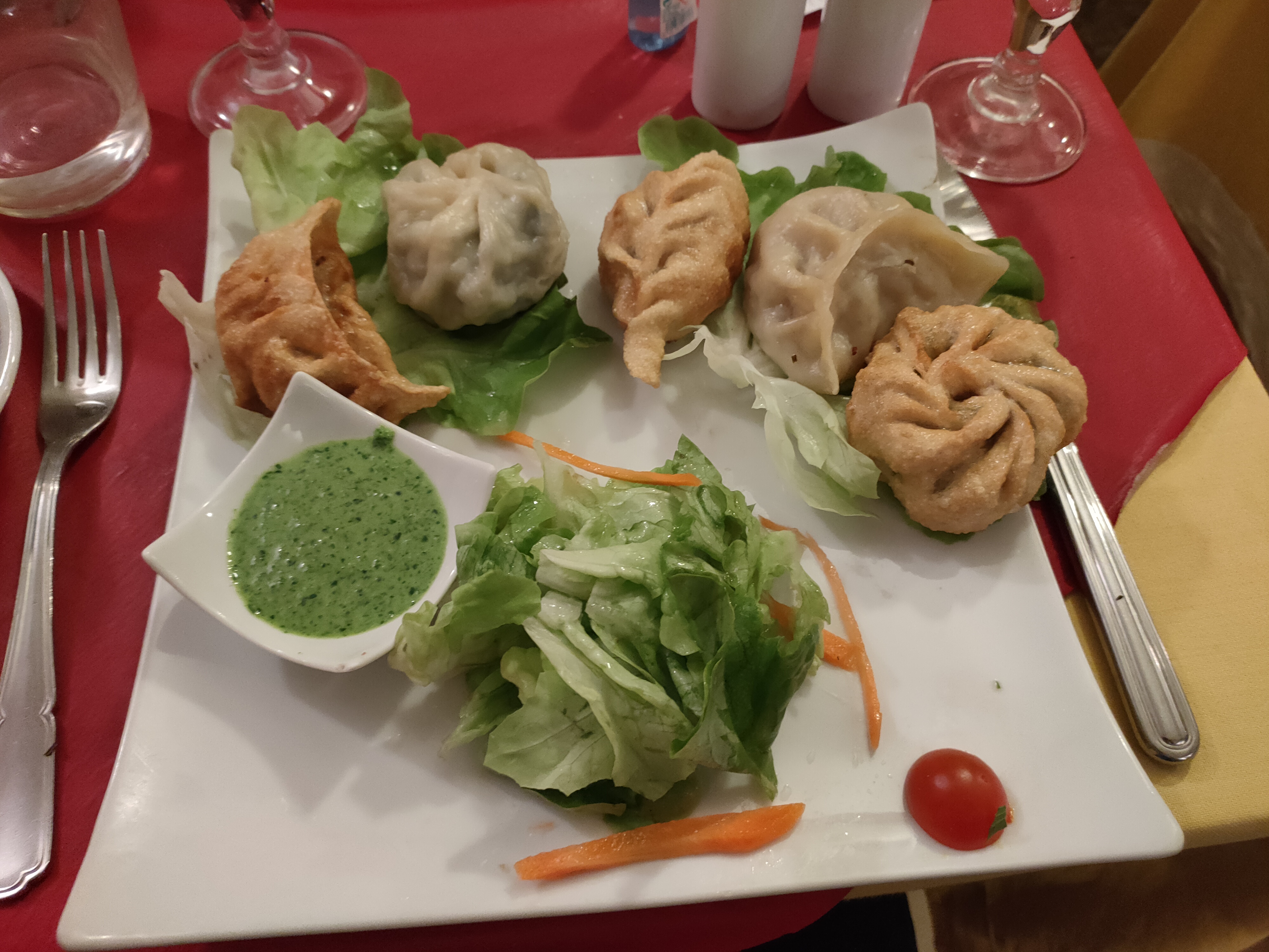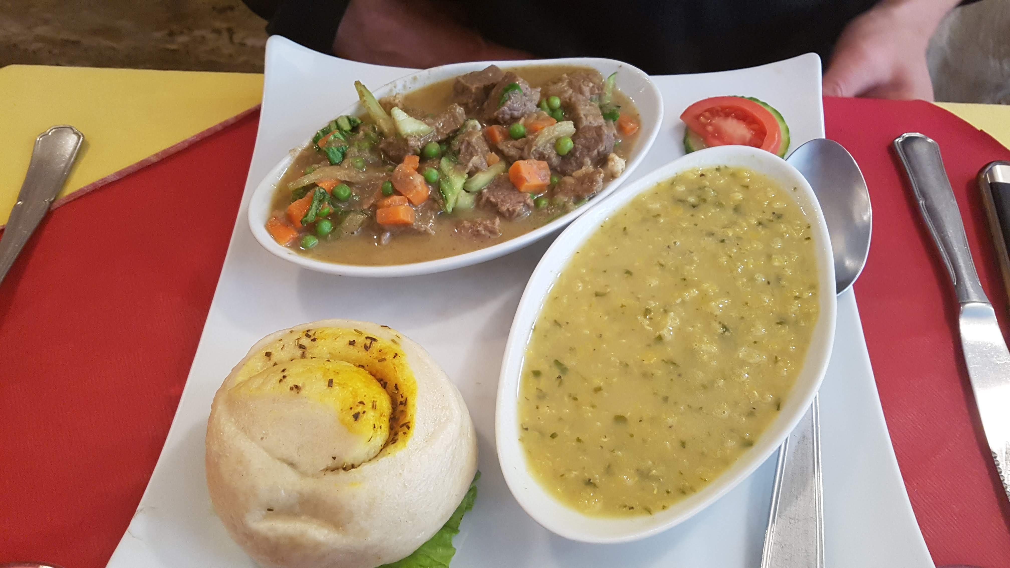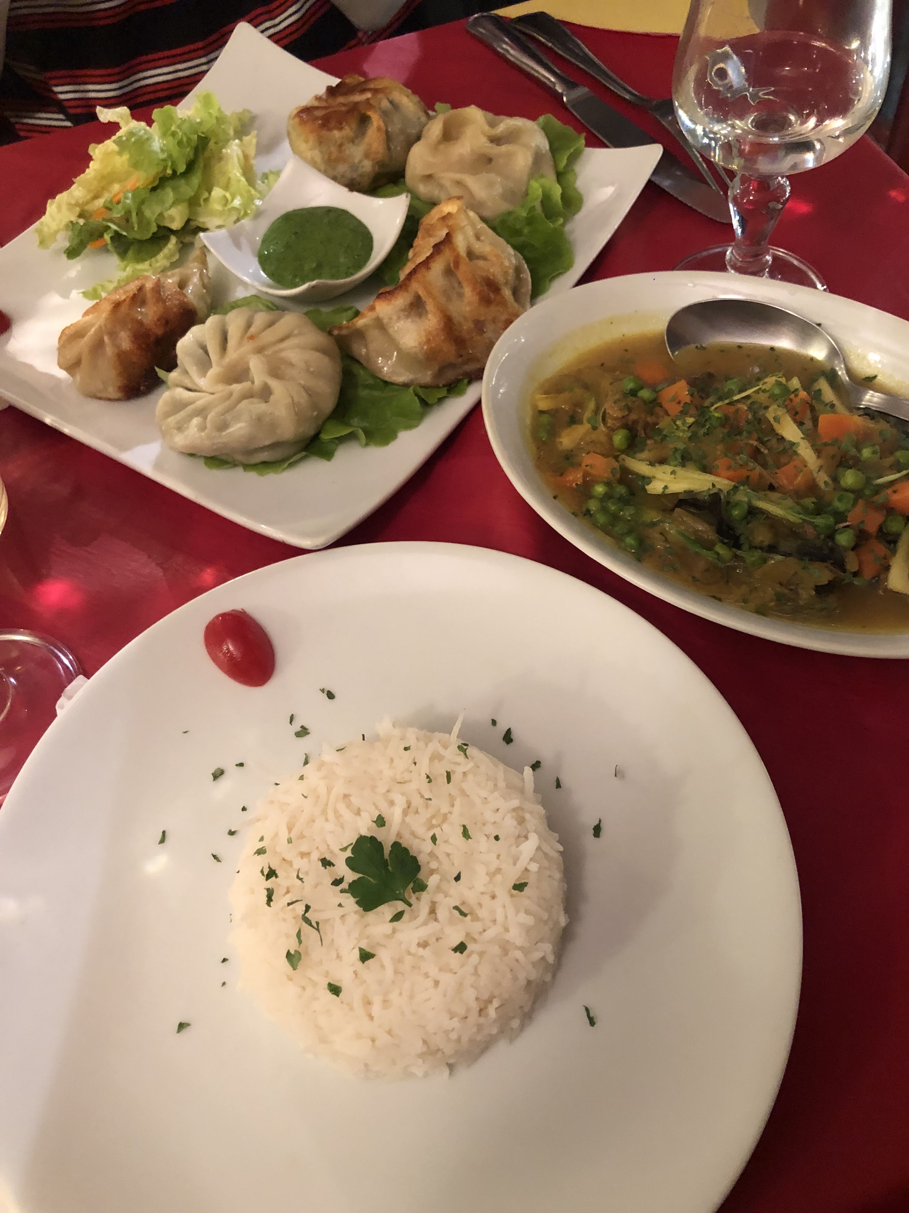 La soupe au boeuf est un Regal, surtout avec leur piment maison. Les momos sont délicieux, la patronne nous a mélangé du végétarien et non veg. Et le curry boeuf, avec le pain tibétain mama, que du bonheur. Je conseille. 5*