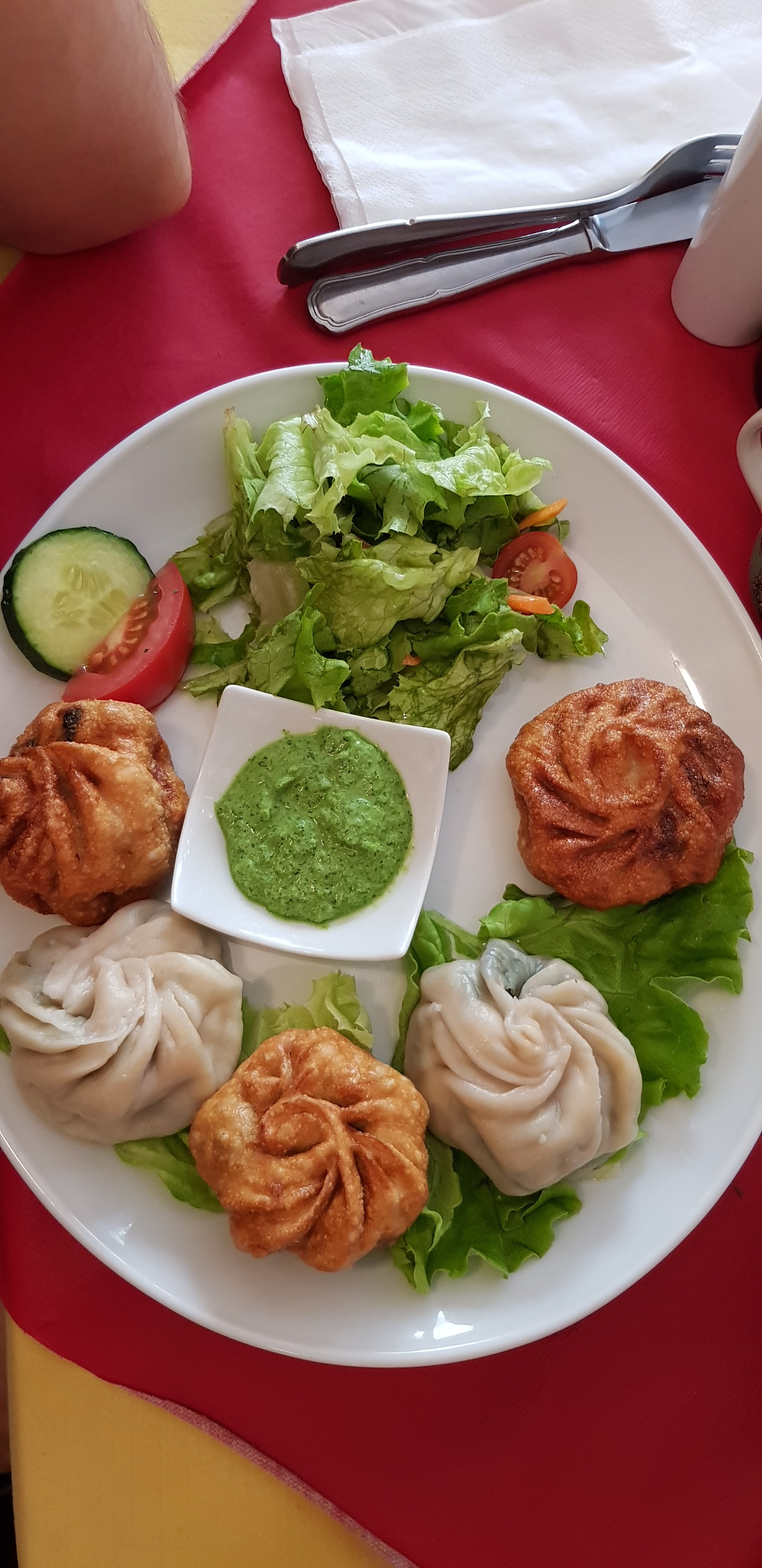 Pour une première dans un restaurant tibétain c'etait bon mais je m'attendais a plus de saveurs (plats que légèrement épicés mais pas pimenté). Le pain tibétain n'a rien de transcendant. De plus, les portions sont petites. Au vu des avis précédents je m'attendais a mieux.