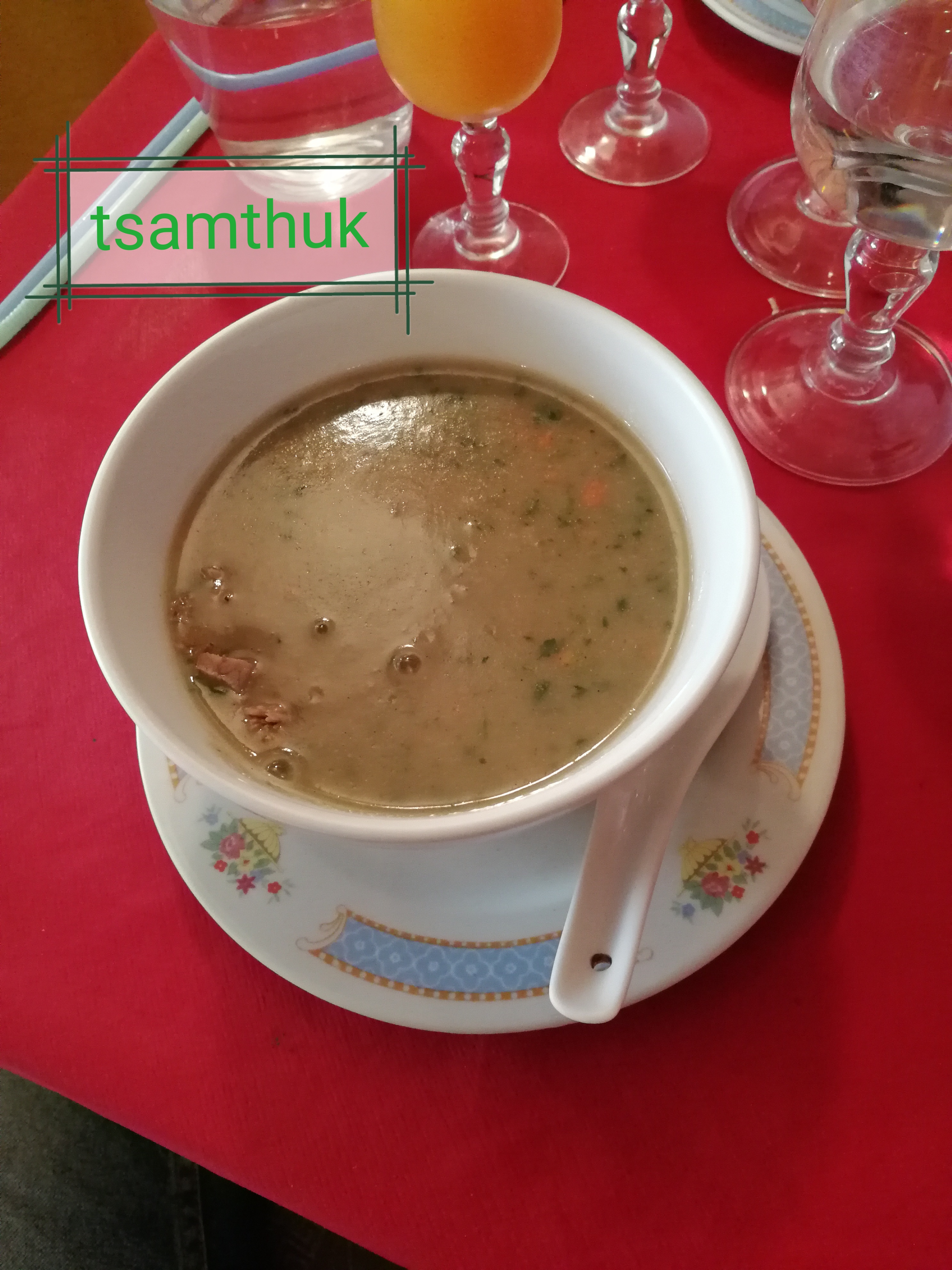 Ambiance zen, cadre typique, bonne soupe à base d orge, raviolis variés...