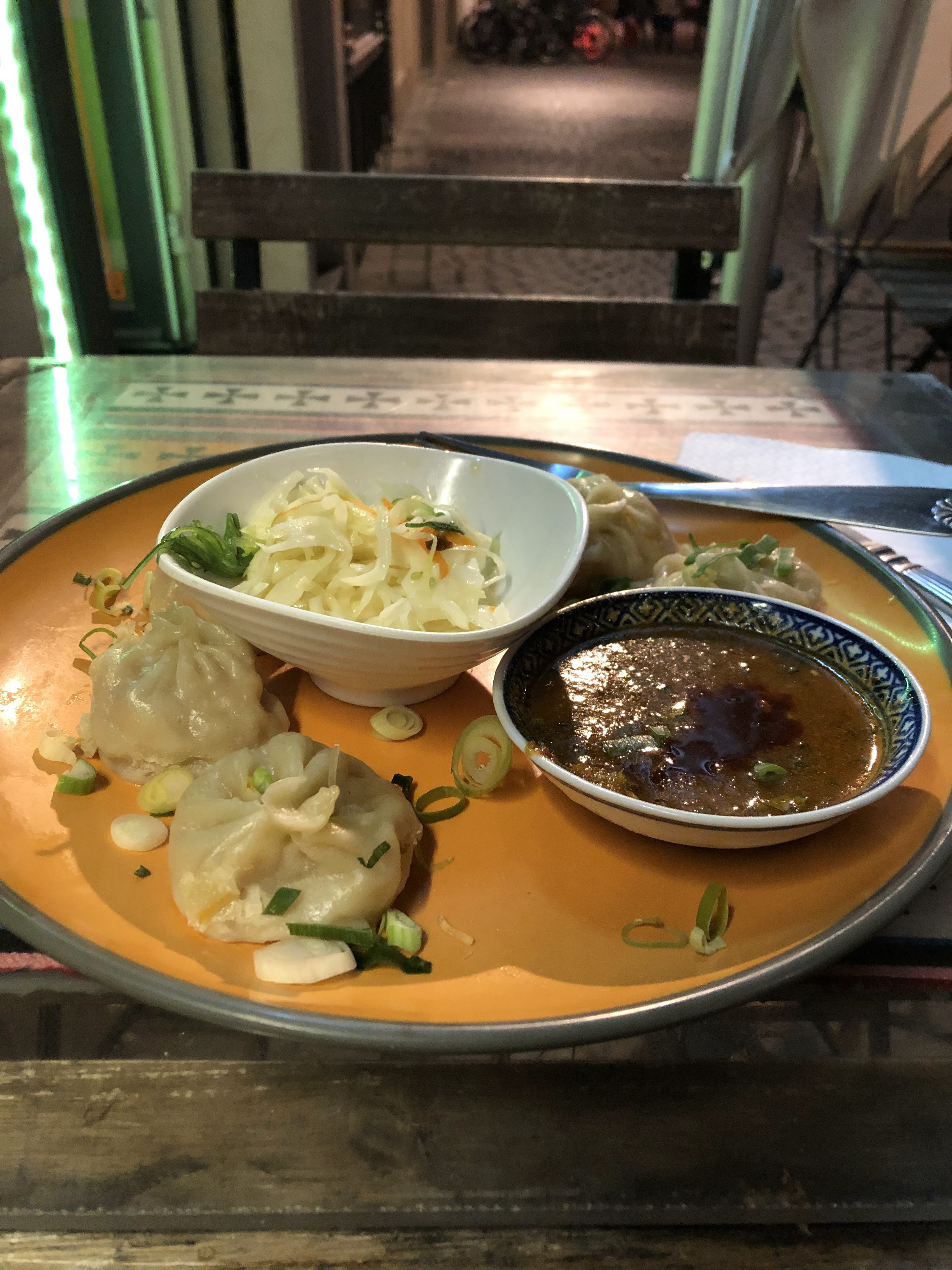Belle découverte que ce restaurant de momos tibétains, raviolis fourrés à la viande ou aux légumes, servis avec salade et une délicieuse sauce. La version agneau m'a beaucoup plu ! Je reviendrai tester le thé au beurre de yak.