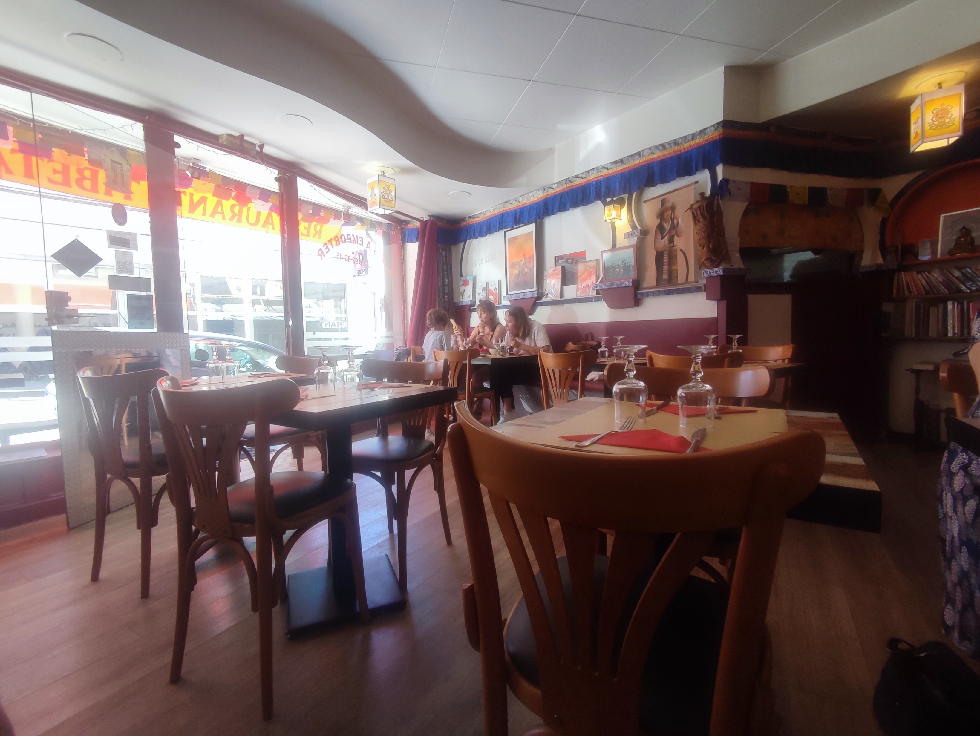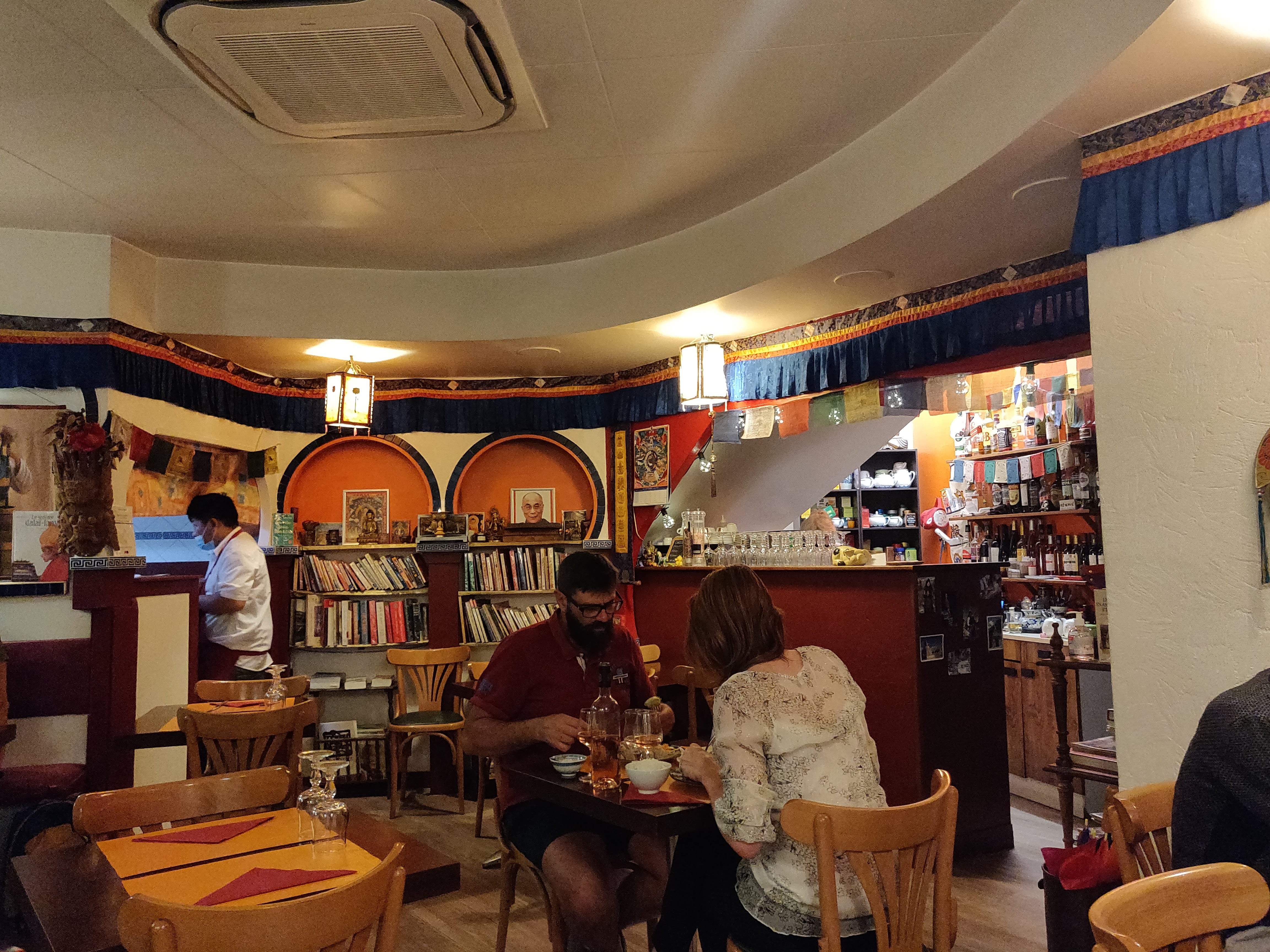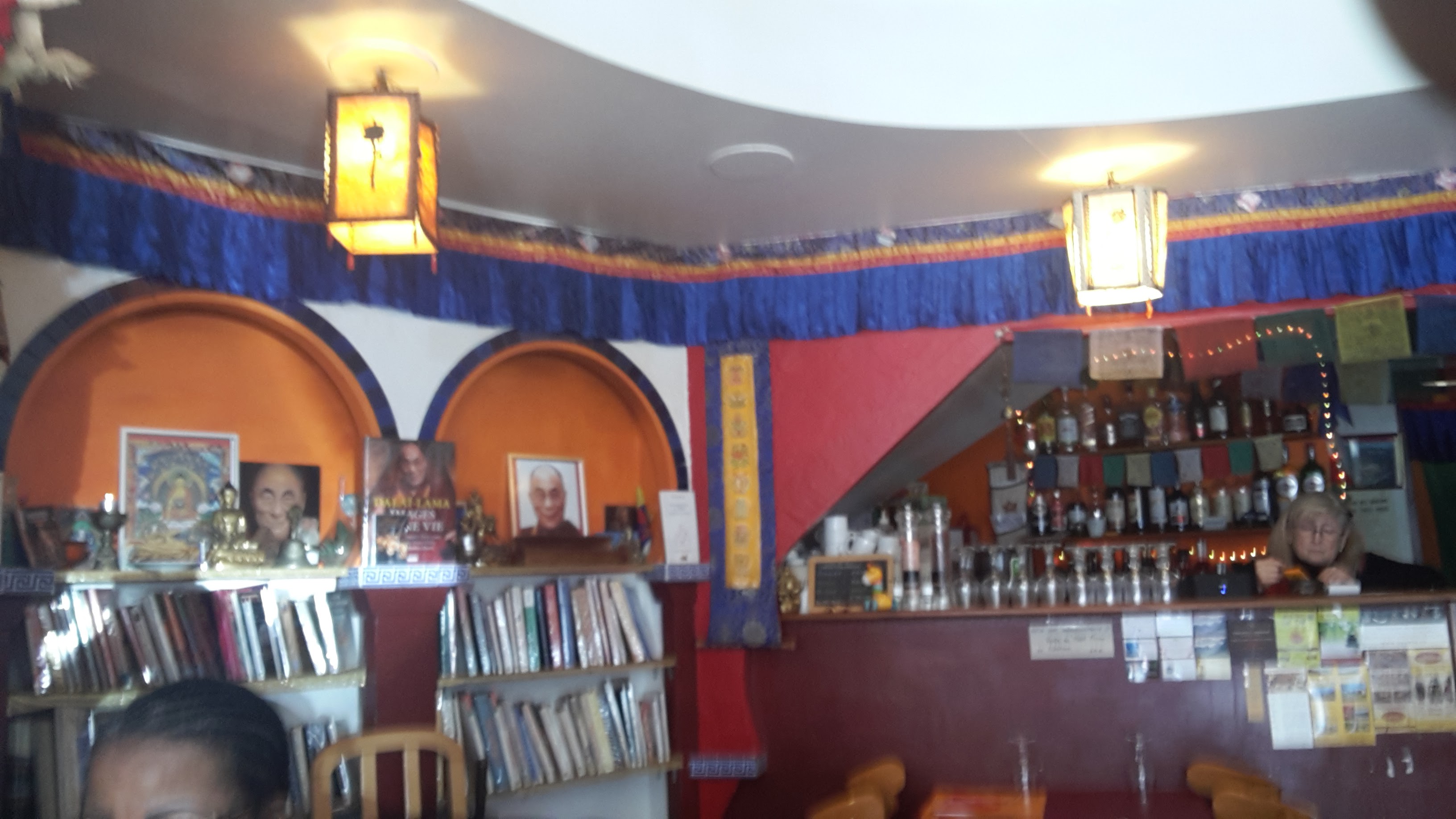 Accueil agréable dans un cadre aux couleurs chaudes. Ambiance sympa. La patronne nous a bien expliqué la cuisine tibétaine .soupe délicieuse, spécialités bien préparées , pas pimentées. C est bon à savoir. Et bibliothèque Bouddhiste bien fournie.