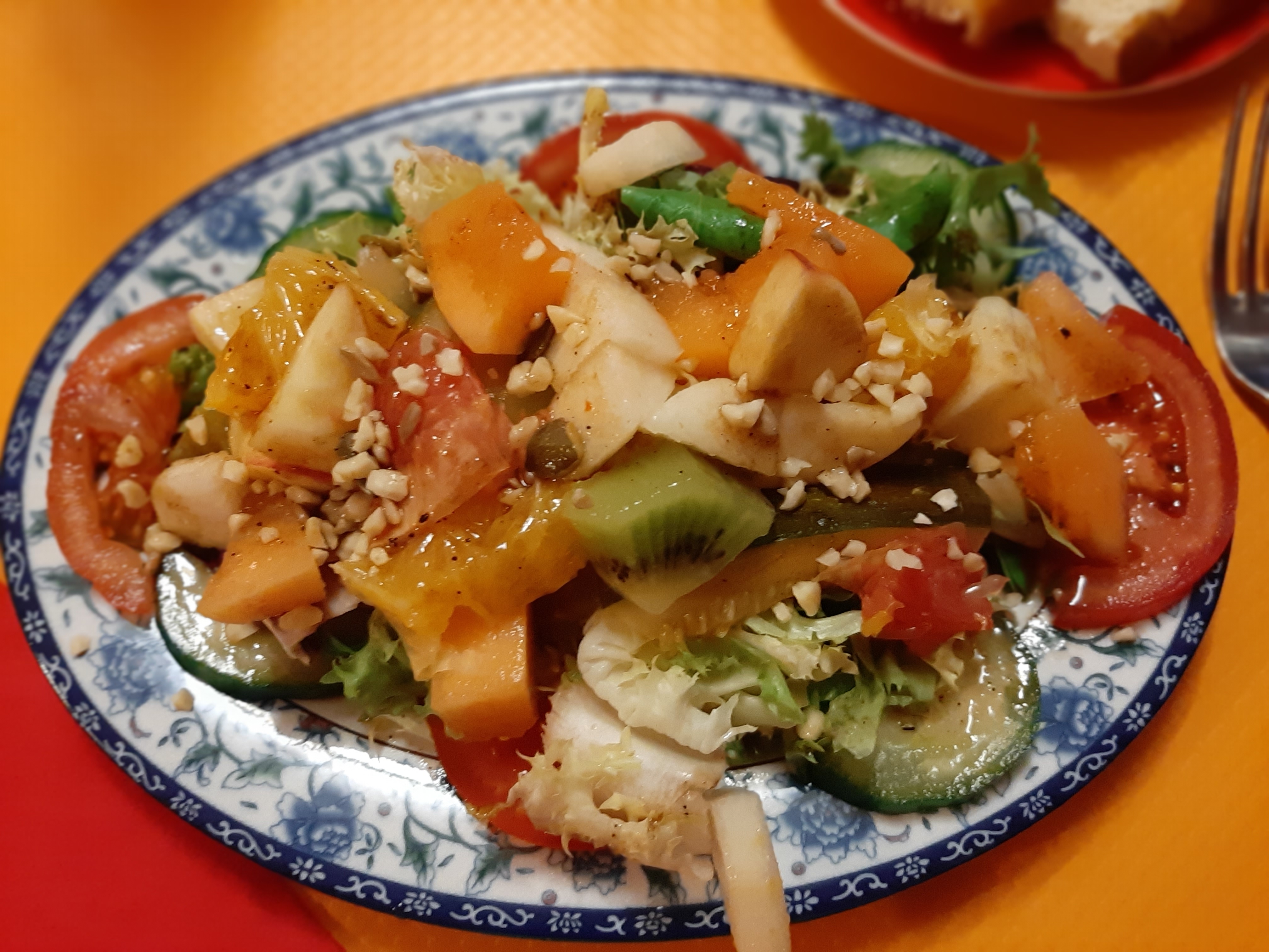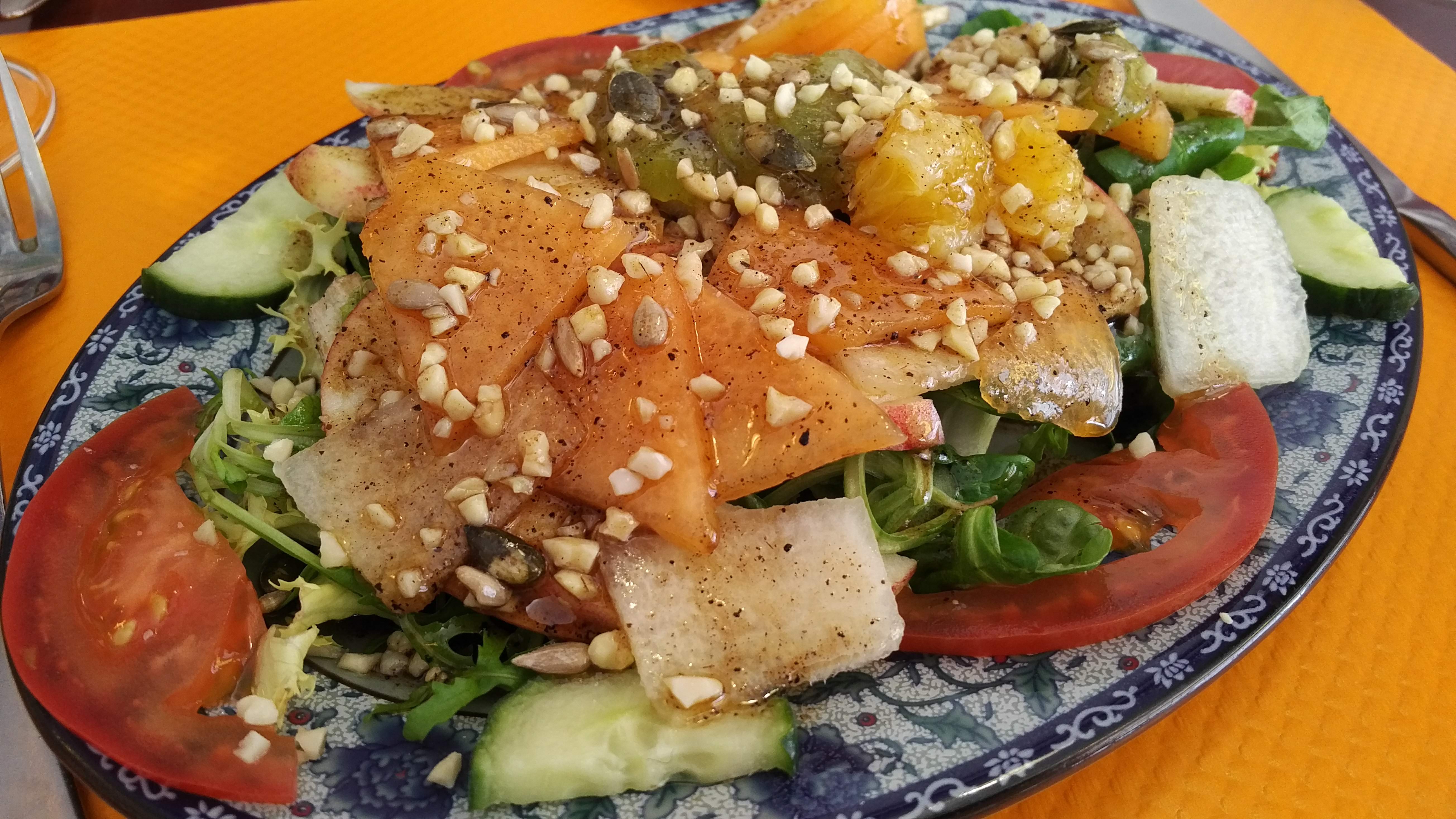 Bof! Patron pas très causant, pas d'explications sur les plats donc choix au hasard, assiette de cantine (présentation vraiment pas raffinée)! Seule la tisane citron-miel-gingembre m'a goûté! Assez cher au final!