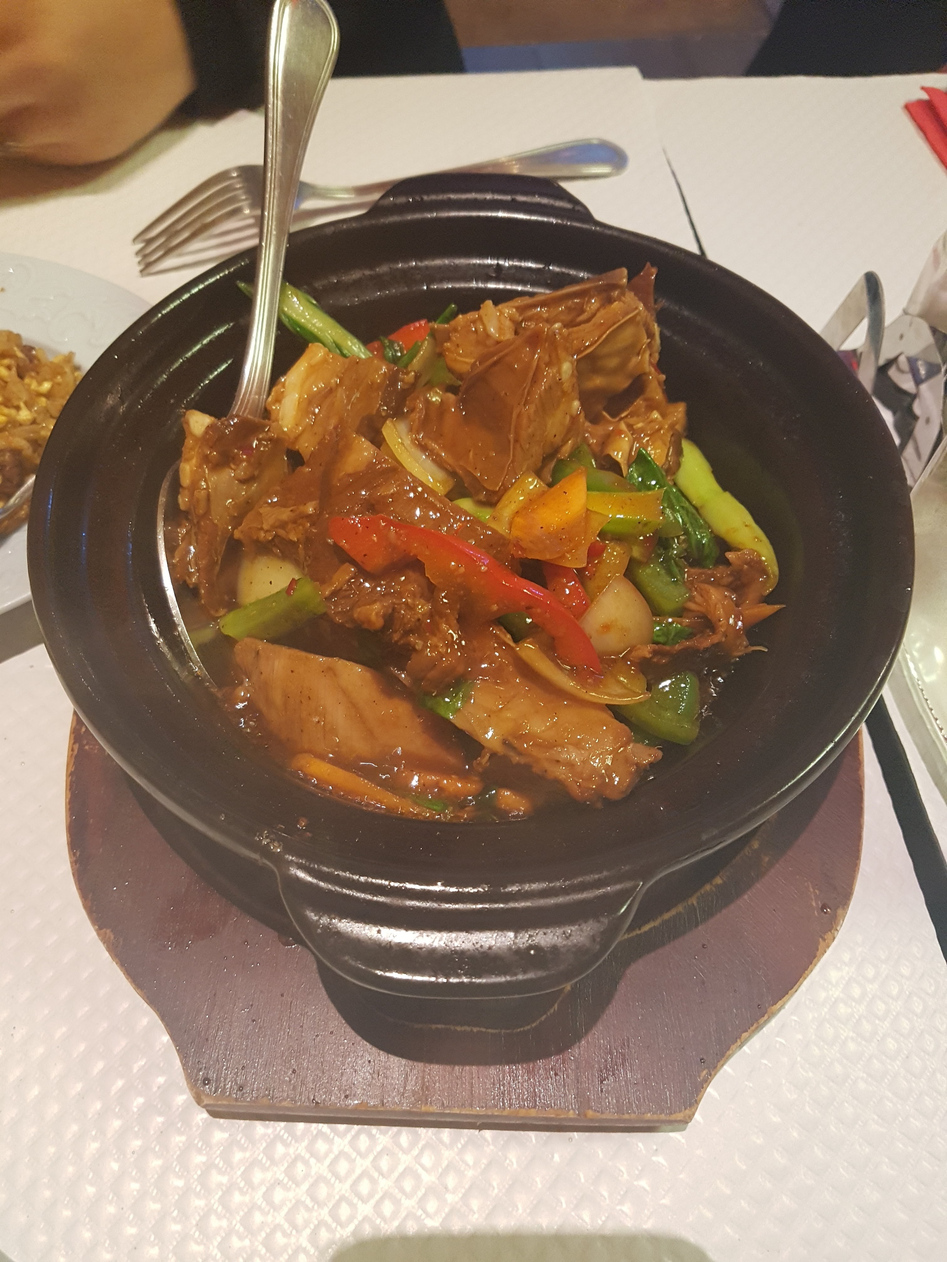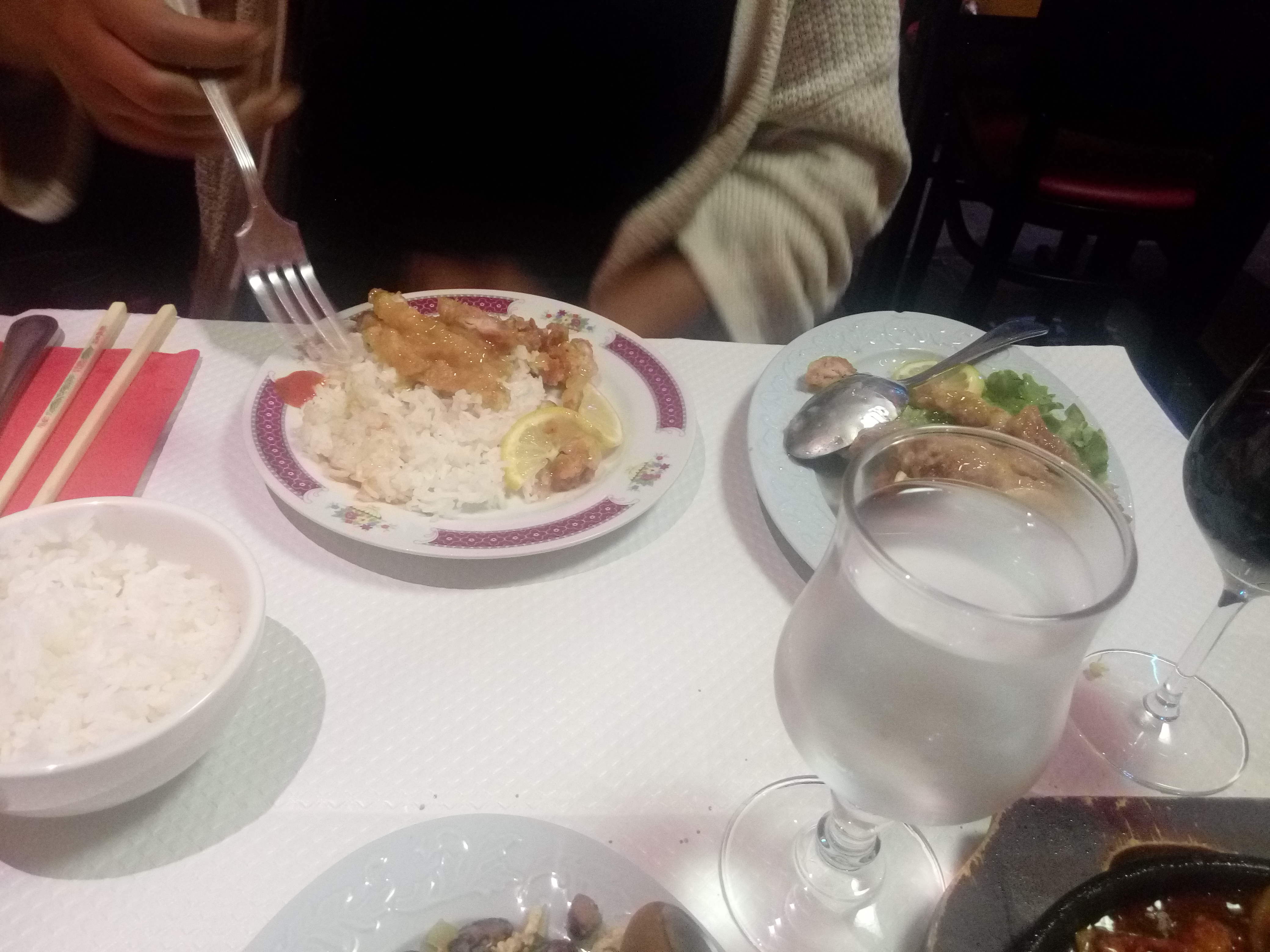 Un désastre. Nous sommes les trois seuls clients et les serveur semble pourtant débordé. Les plats servis, le poulet au caramel plein de glutamate a un arrière goût de chocolat et la viande aucun. On demande du riz, il arrive après qu’on le réclame à nouveau et 20mn après (j’imaginais qu’il y avait un rice cooker quelque part où il aurait suffit de se servir). Impossible de demander une carafe d’eau, le serveur ne nous voit pas… à ce moment là il y a 2 tables occupées, un couple et nous). Mon plat n’est jamais arrivé. Après l’avoir réclamé le serveur nous dit que non, tous les plats ont été servi. Je laisse tomber… l’attente et la chaleur qu’il fait dans le boui boui ont eu raison de ma patience. Évidemment le plat qui n’est jamais arrivé se retrouve sur l’addition. Le serveur ne lâche rien, il veut nous faire payer le fameux plat. Quand enfin on récapitule ce que nous avons mangé, ou laissé de côté, il daigne faire la soustraction. A aucun moment il ne s’est excusé, disant qu’ils était seul au service… pour 5 personnes.