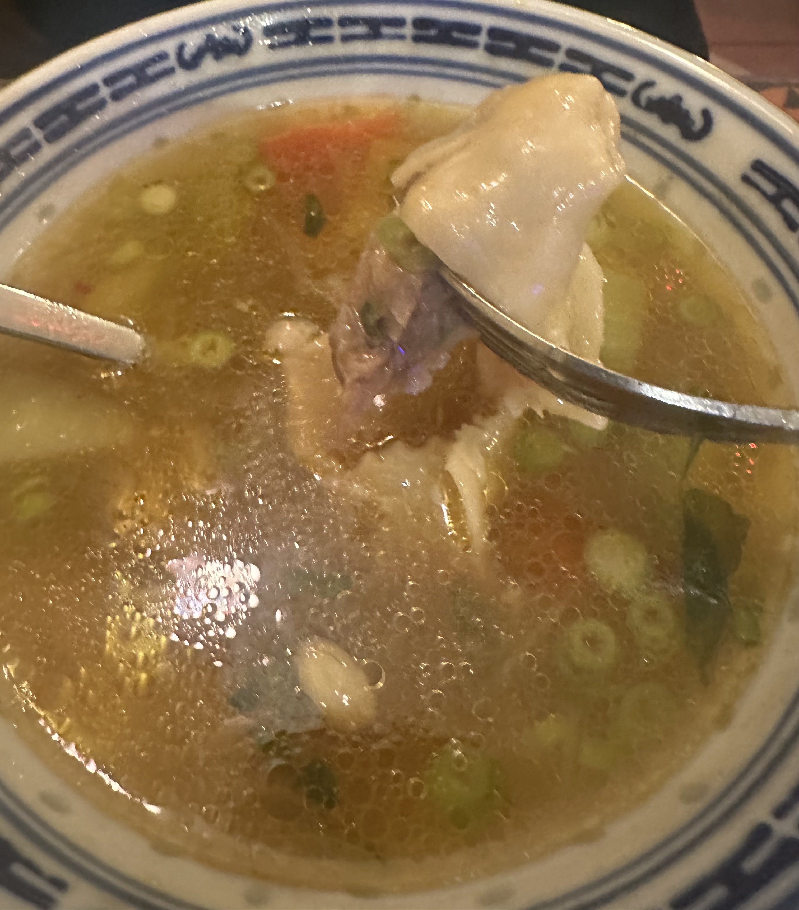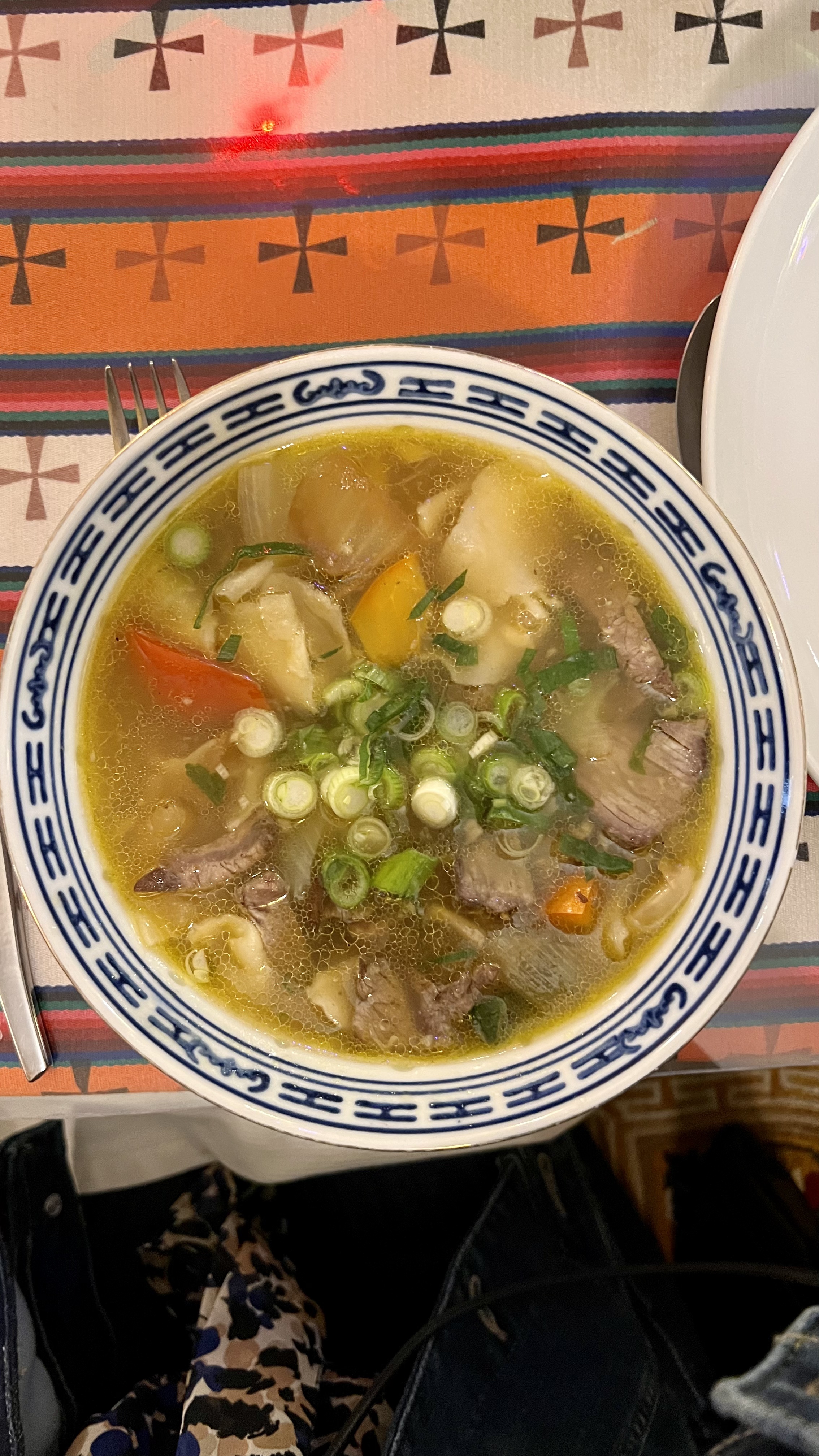 J'avais envie d'une soupe et j'ai trouvé ce petit bijou tibétain !! J'étais le tout premier client et cet endroit s'est rempli très rapidement. La soupe était servie extrêmement chaude. Je me suis brûlé la langue mais cela ne m'a pas empêché de siroter le bouillon. Il n'est pas beaucoup assaisonné, donc il peut avoir un goût un peu fade pour certaines personnes, mais il est savoureux avec beaucoup de légumes. 100% vaut un autre retour.