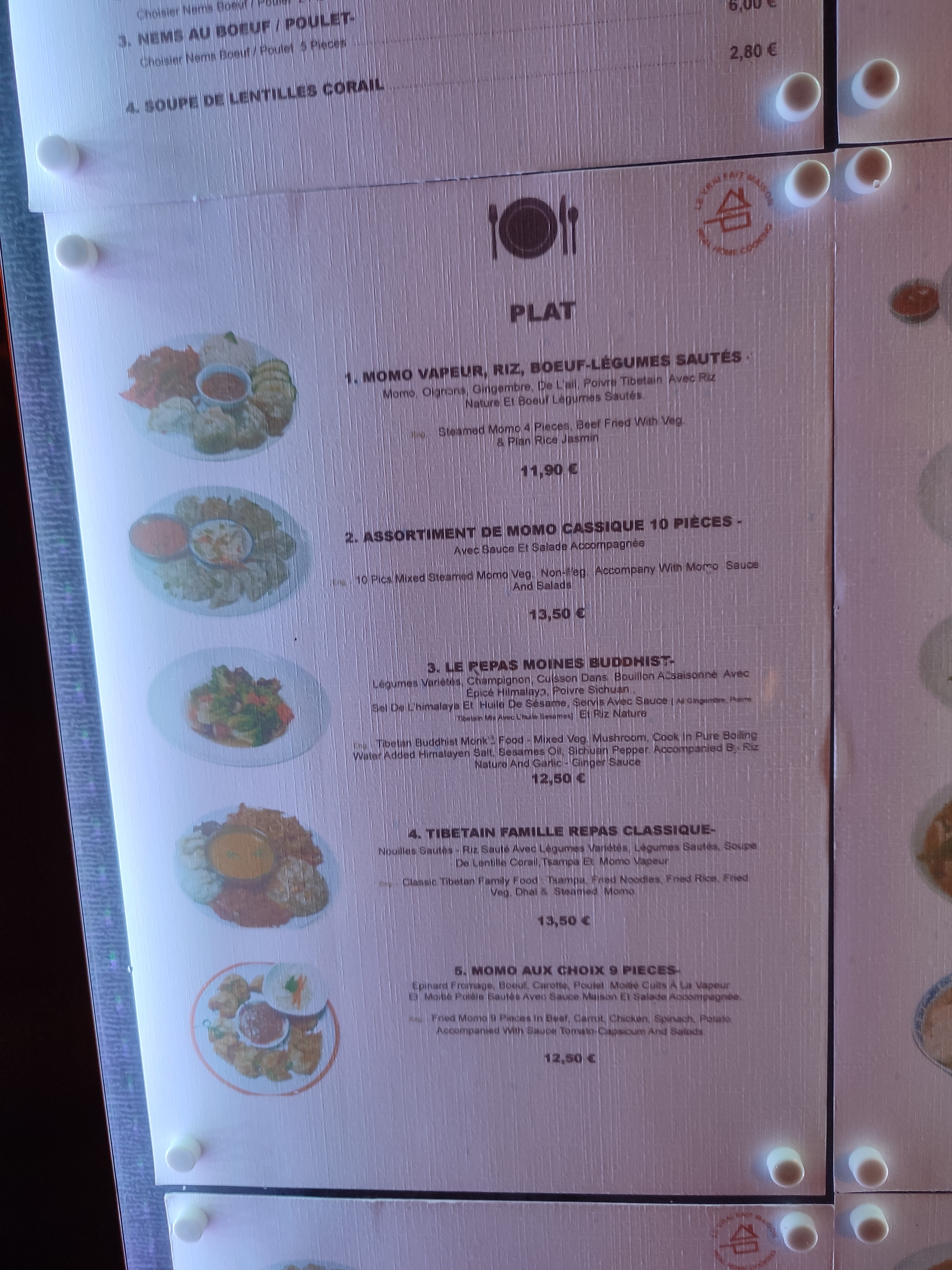 C'est la 1ere fois que je viens. L'accueil est sympathique. J'ai adoré la ''soupe momos''... et les boissons chaudes sont originales. Les prix sont très raisonnables. Je reviendrais pour découvrir d'autres spécialités tibétaines.