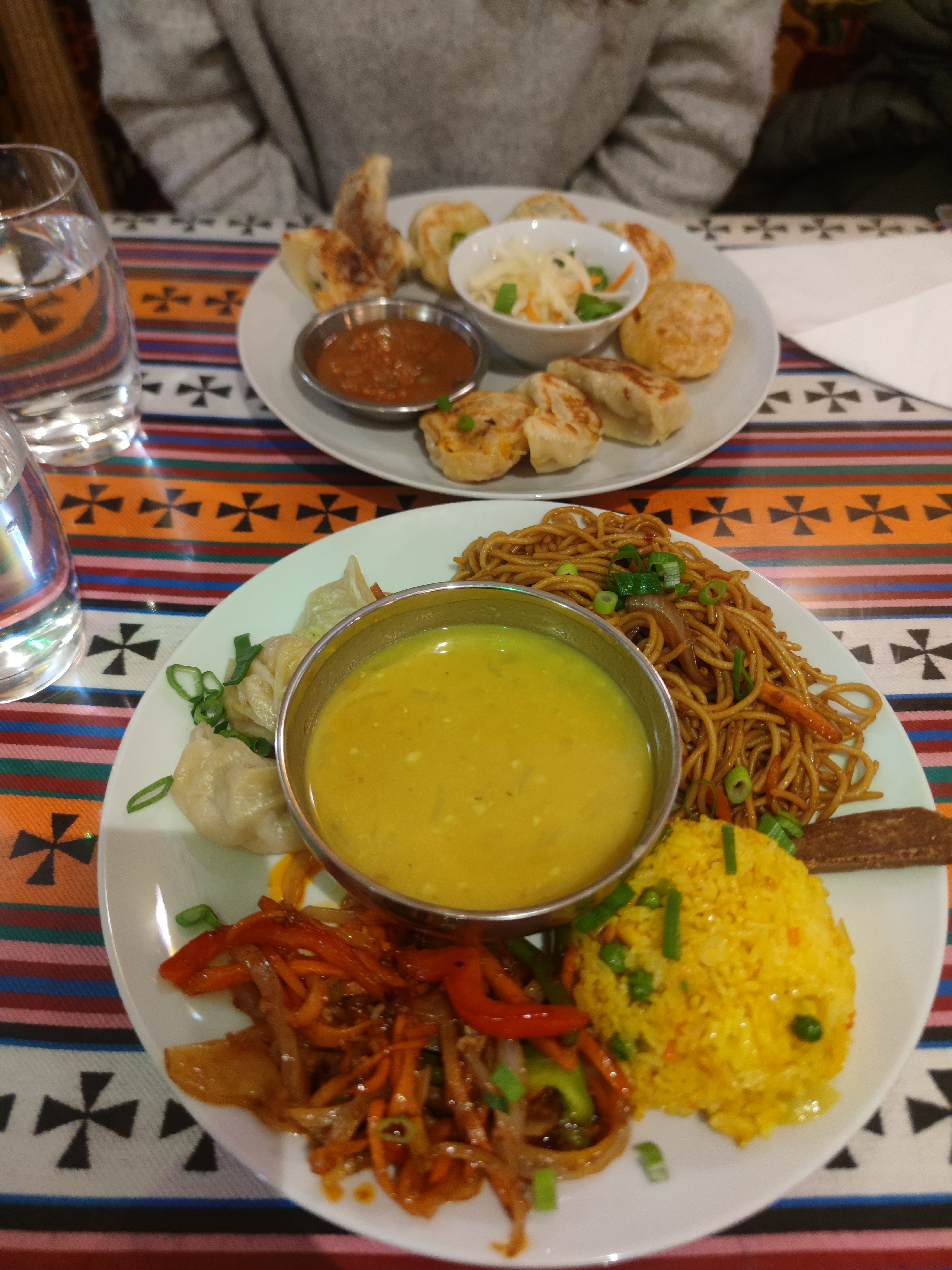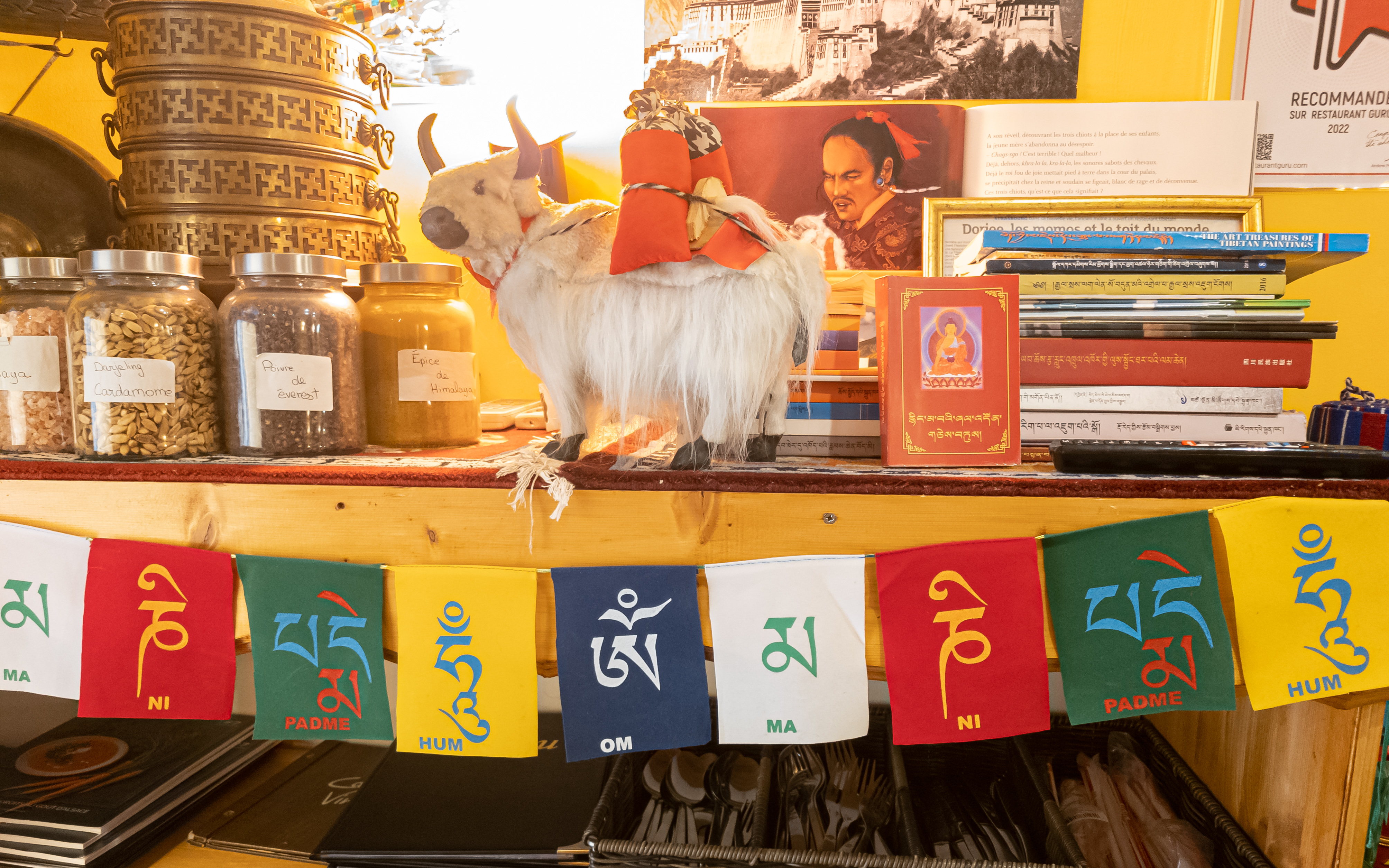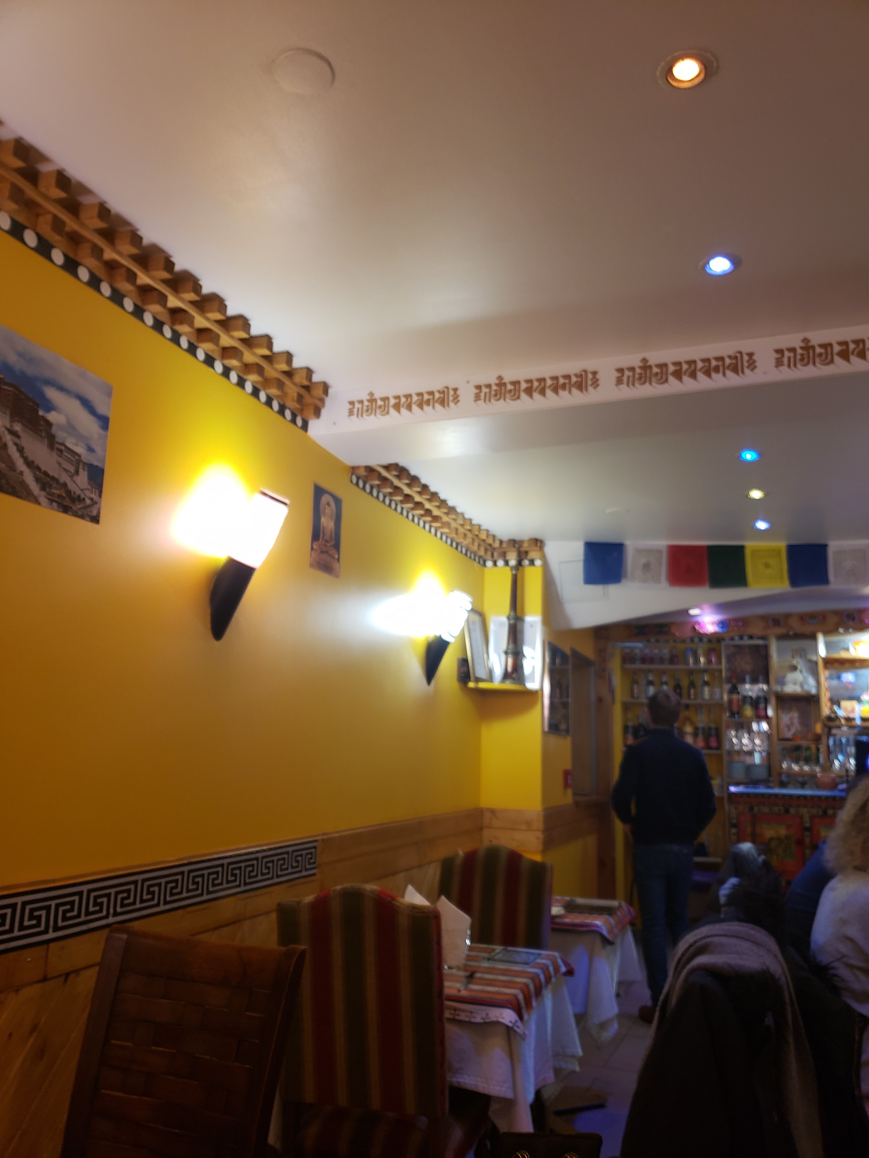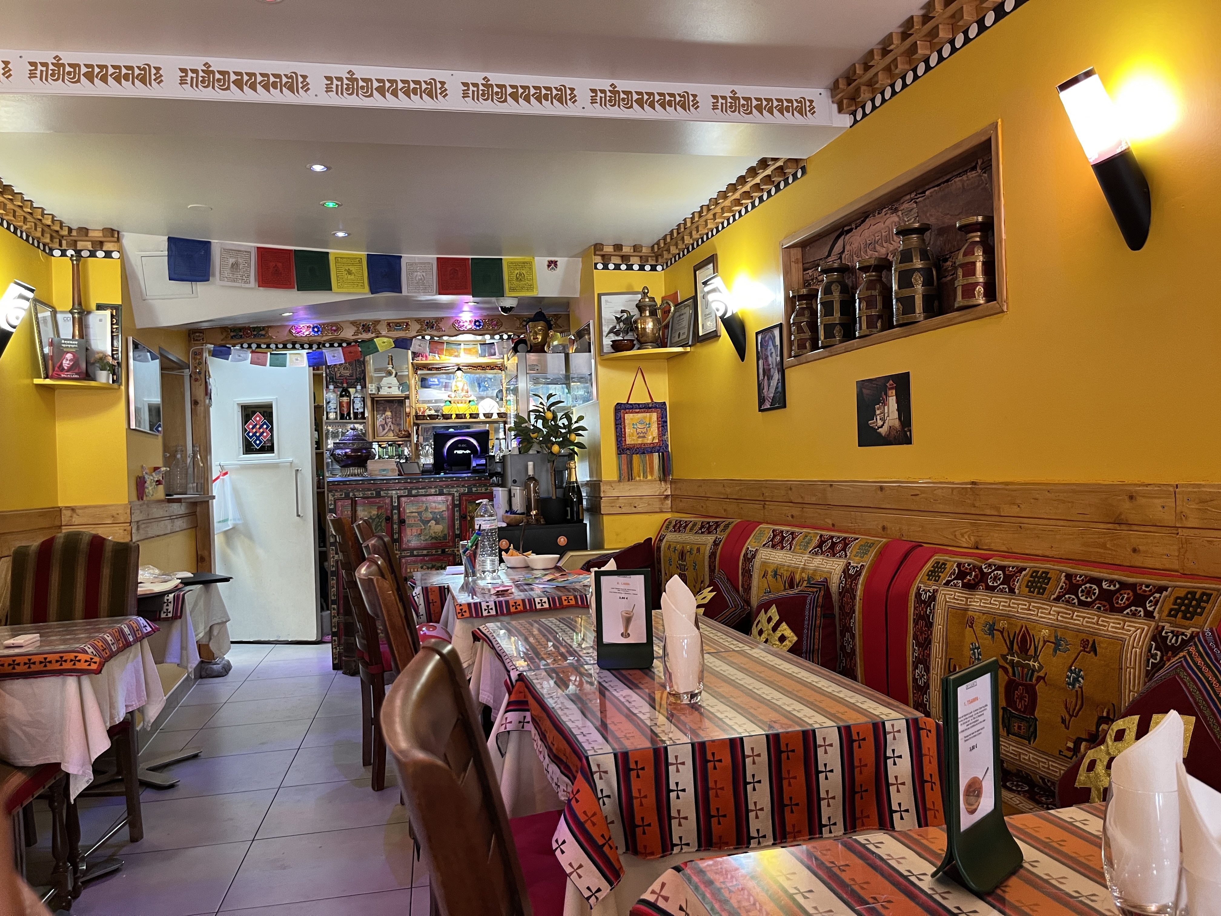 Après un voyage au Népal il y a quelques années, j'avais beaucoup envie de retrouver la nourriture népalaise et tibétaine. À l'arrivée dans le restaurant, le mantra Om Mani Padme Hum nous a tout de suite mis dans l'atmosphère. Nous avons été très bien accueillis, la soupe Mokthuk recommandée était délicieuse et m'a rappelé des souvenirs.