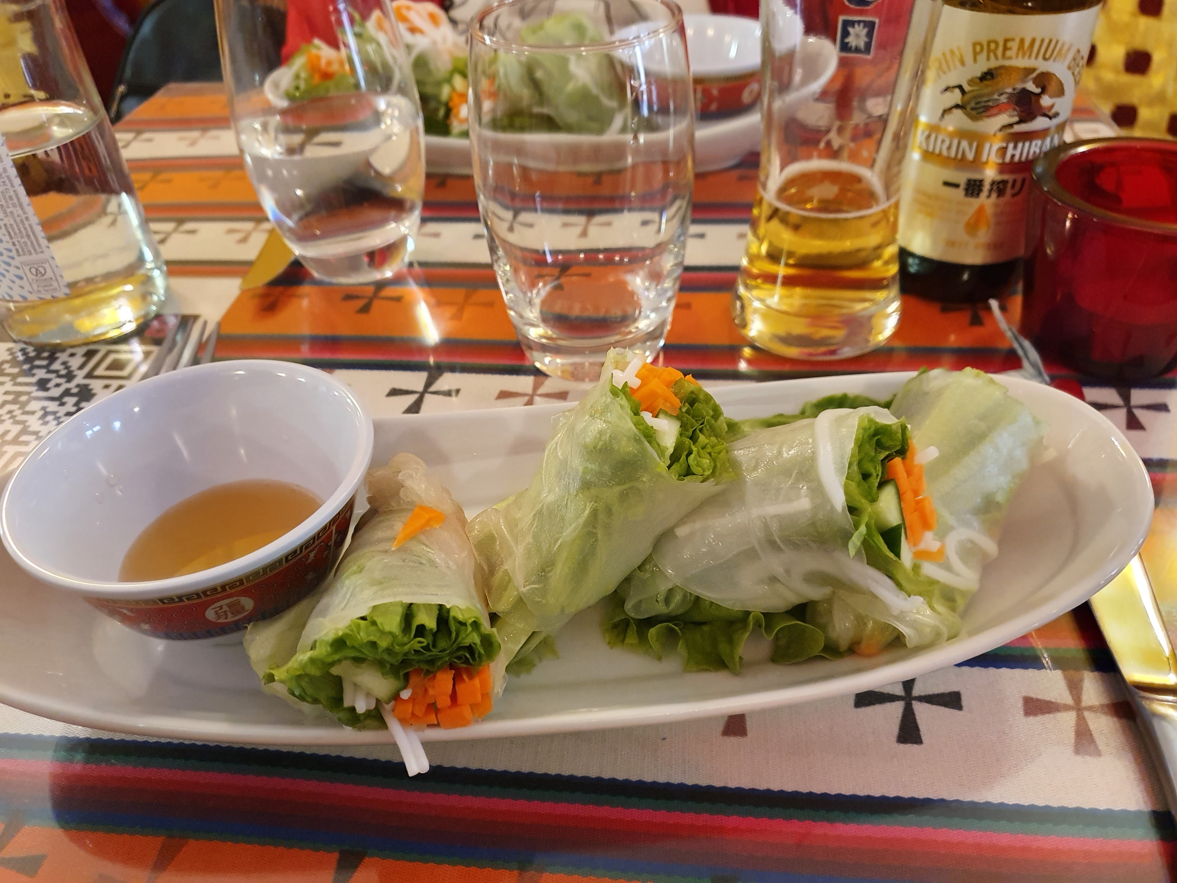 La nourriture, bien que faite maison, est assez simple avec un goût qui ne sort pas de l'ordinaire. Cela aurait été 4 étoiles si le service n'était pas aussi catastrophique avec plus de 1h30 entre l'installation et la réception des plats. Les boissons ne sont même pas apportées pour aider à patienter. C'était gentil d'offrir des rouleaux de printemps en guise d'excuse mais cela ne compense pas cette attente particulièrement longue pour un repas somme toute classique. Il serait temps d'envisager d'embaucher d'autres personnes, avec uniquement deux qui s'occupent de tout, que ce soit la cuisine ou le service.