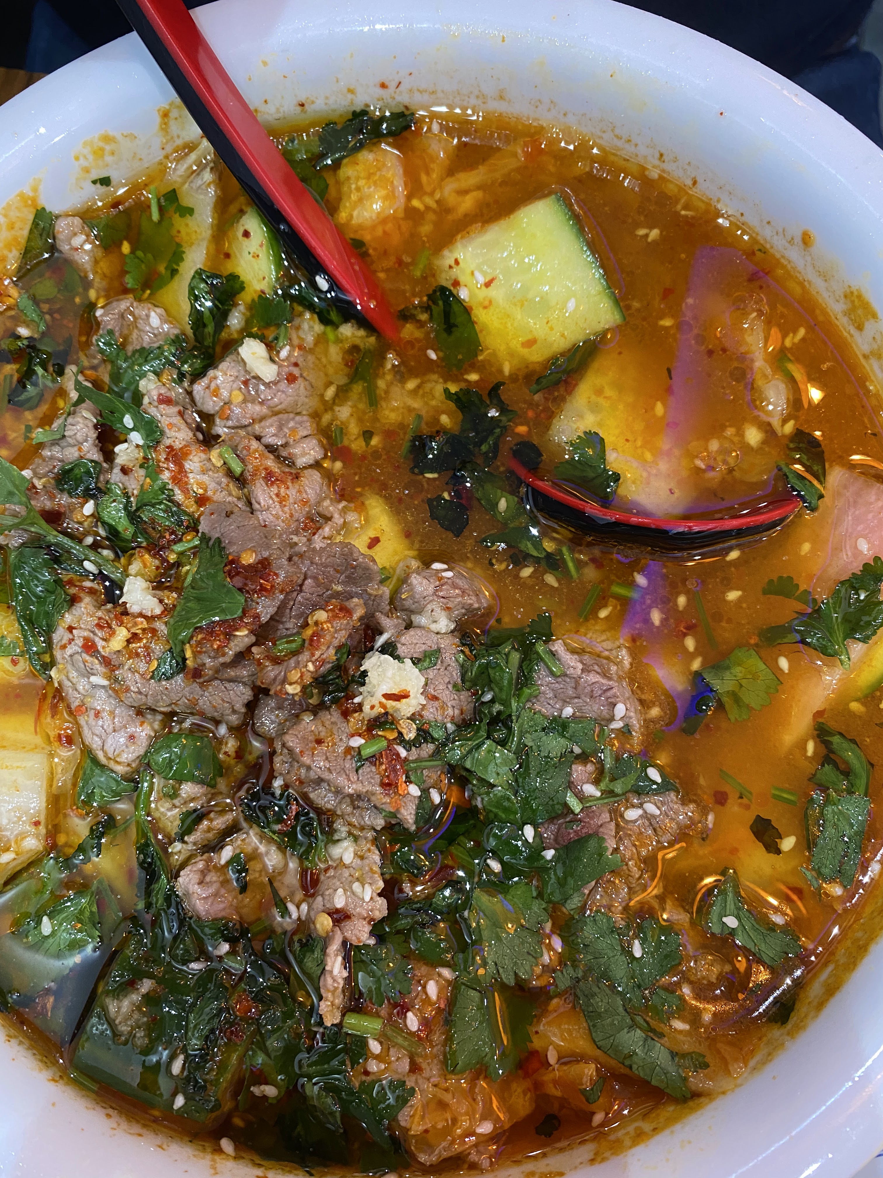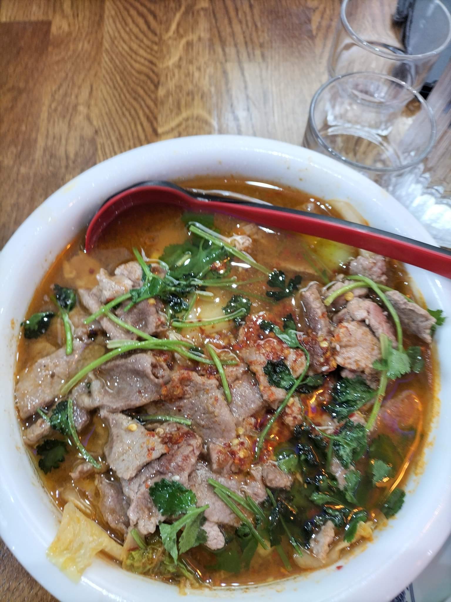 Repas incroyable. Des portions très généreuses. J'ai pris le pad thai avec du poulet et mon mari de la soupe à la viande. Tout est très très bon. Et très abordable ! J'y mangerais encore